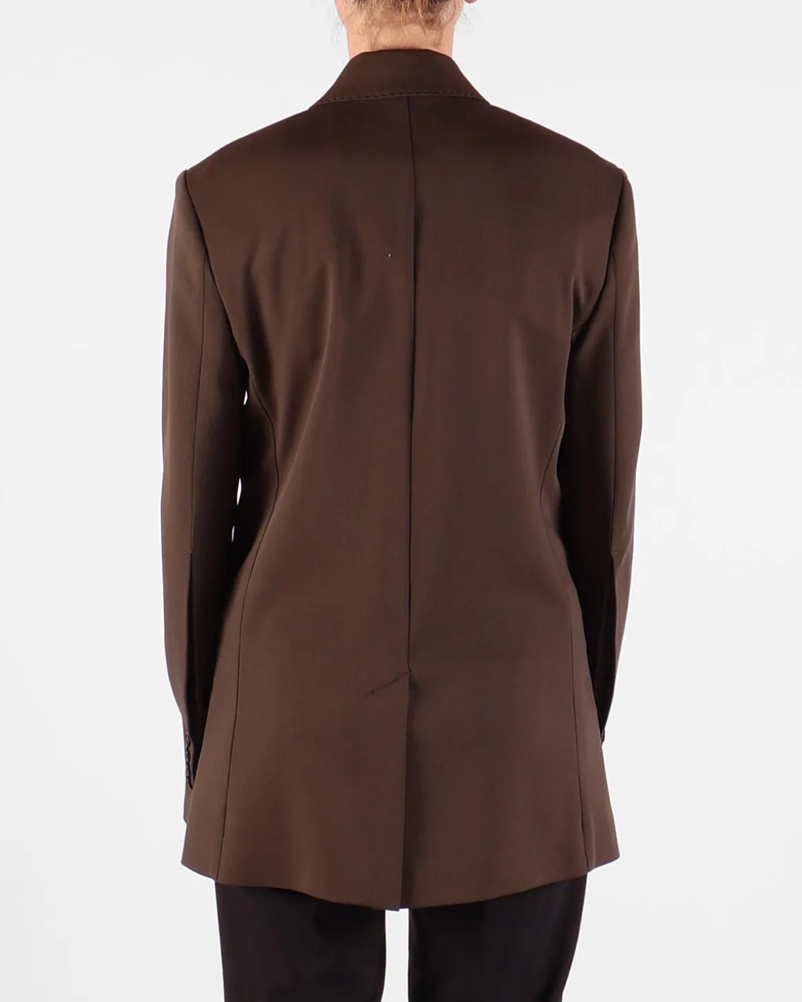 Deze bruine blazer van Ami heeft een tijdloze en chique uitstraling. De klassieke snit en verfijnde afwerking zorgen voor een elegante pasvorm, die zowel casual als formeel gedragen kan worden. Perfect voor een moderne, stijlvolle look met een vleugje verfijning.