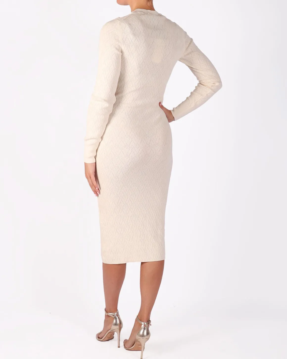 Deze crèmekleurige jurk van Ami straalt ingetogen elegantie uit met zijn lange mouwen en subtiele logoprint. Het minimalistische ontwerp biedt een tijdloze en toch moderne uitstraling, perfect voor verschillende gelegenheden. De crèmekleurige tint geeft een verfijnde en rustige vibe, terwijl de subtiele logoprint een eigentijds detail toevoegt. Draag deze jurk met laarzen voor een trendy look in het najaar of met sandalen voor een luchtige zomerstijl, waardoor het een veelzijdige keuze is voor je garderobe.