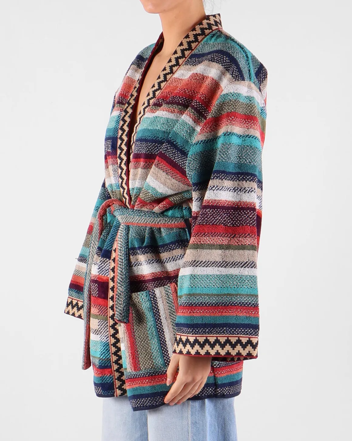 Deze gestreepte kimono van AVDW Antwerp is gemaakt van zachte badstof, wat zorgt voor een comfortabele en luxe uitstraling. Het gestreepte patroon voegt een speels element toe, terwijl de relaxte snit perfect is voor zowel ontspannende momenten als stijlvolle casual looks. Ideaal voor een chique, maar comfortabele outfit.