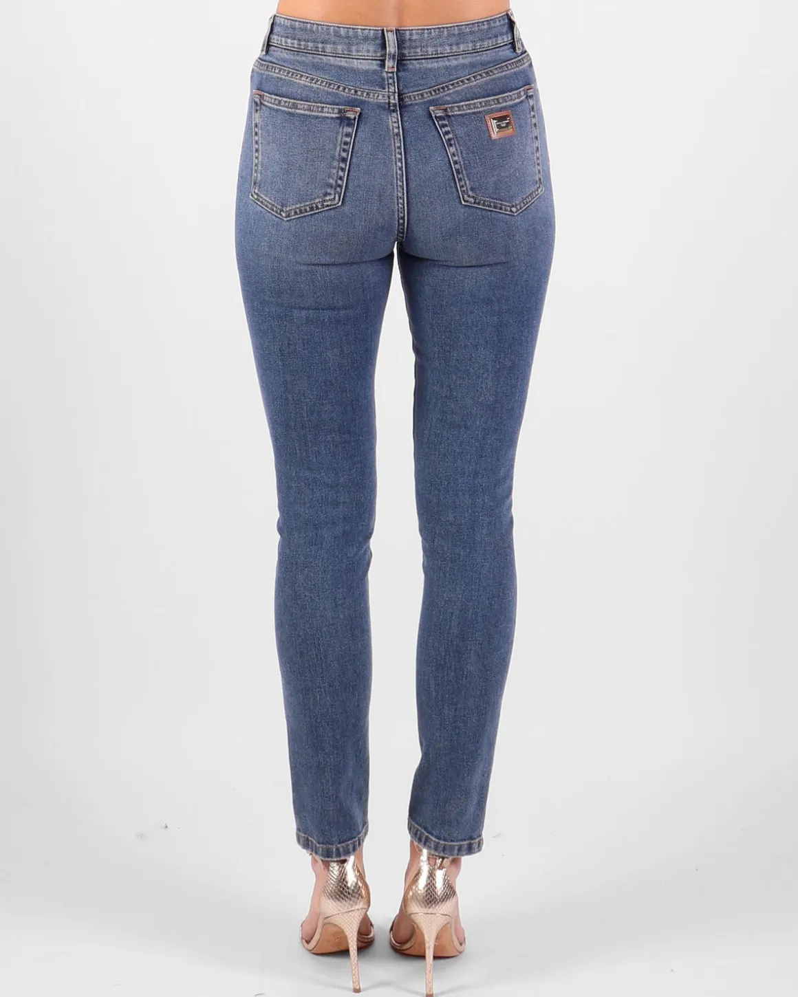 Deze blauwe, goed aansluitende jeans van Dolce & Gabbana bieden een slank silhouet dat het lichaam mooi flatteert. Gemaakt van hoogwaardig denim, bieden ze zowel comfort als een stijlvolle, moderne uitstraling. De rijke blauwe kleur maakt ze veelzijdig voor zowel casual als chique gelegenheden. Ontworpen met de kenmerkende Dolce & Gabbana flair, voegen deze jeans verfijning toe aan je dagelijkse garderobe.