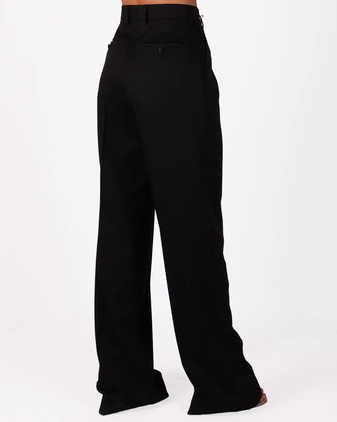 De zwarte pantalon van Dolce & Gabbana met hoge taille is een elegant en tijdloos kledingstuk. Gemaakt van hoogwaardige materialen, heeft de broek een slanke, flatterende pasvorm die de taille accentueert en de benen verlengt. De hoge taille voegt een klassieke en verfijnde touch toe, terwijl de scherpe snit en strakke lijnen zorgen voor een moderne, gepolijste look. Deze pantalon is perfect voor zowel zakelijke als formele gelegenheden, en biedt een combinatie van luxe en stijl.