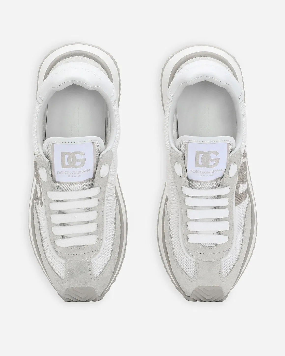 Deze nieuwe Dolce & Gabbana CUSHION sneakers beschikken over een zachte, twee-tone suede bovenkant die het iconische DG-logo versterkt, aangevuld met een contrasterend print op de mesh-zijkant. De lichte, goed passende rubberen zool biedt ultiem comfort zonder in te boeten op stijl. Het jacquardlabel rondt de look af en voegt een onmiskenbare elegantie toe, waardoor deze sneakers een must-have zijn voor de modebewuste.