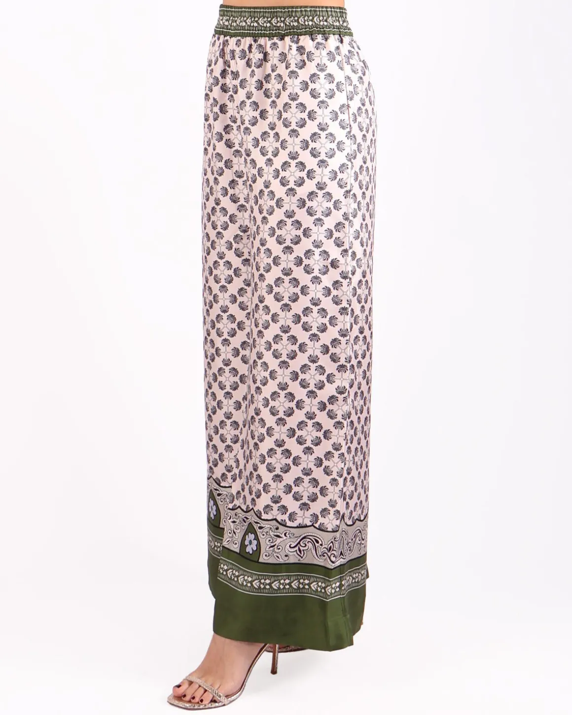 Deze broek van DoubleJ heeft een all-over palmprint, die een tropische en levendige uitstraling aan je garderobe toevoegt. De relaxte pasvorm zorgt voor comfort en bewegingsvrijheid, terwijl de gedurfde print een speelse, maar chique vibe geeft. Perfect voor casual uitjes of vakantie looks, deze broek combineert stijl met een ontspannen gevoel.