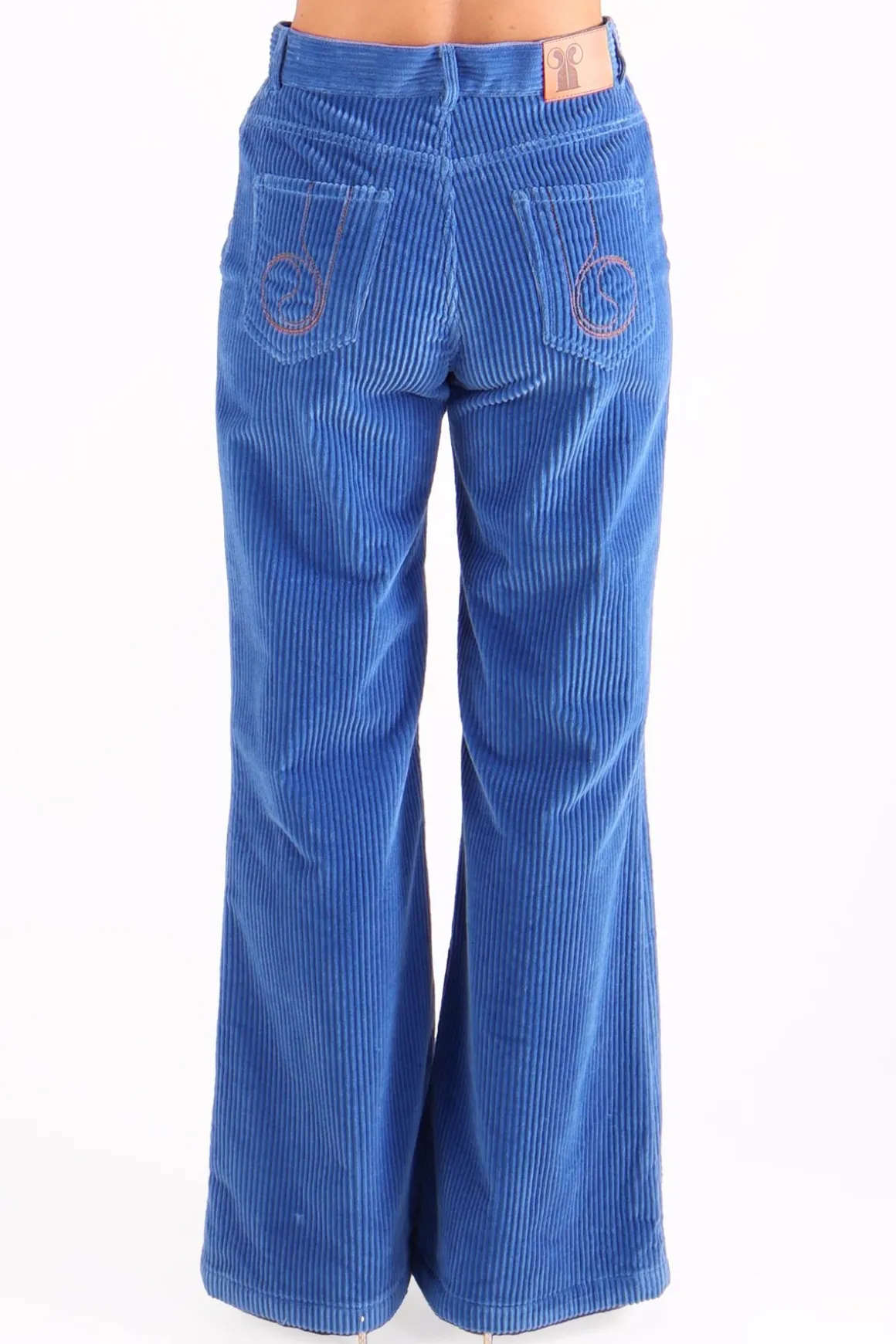 Deze blauwe flaired pantalon van La DoubleJ, gemaakt van ribstof, biedt een trendy en flatterende uitstraling met zijn hoge taille. De wijde pijpen zorgen voor een stijlvolle, vrouwelijke silhouette, perfect voor zowel casual als chic occasions. Combineer het met een strakke top of een blouson voor een eigentijdse look die moeiteloos indruk maakt.