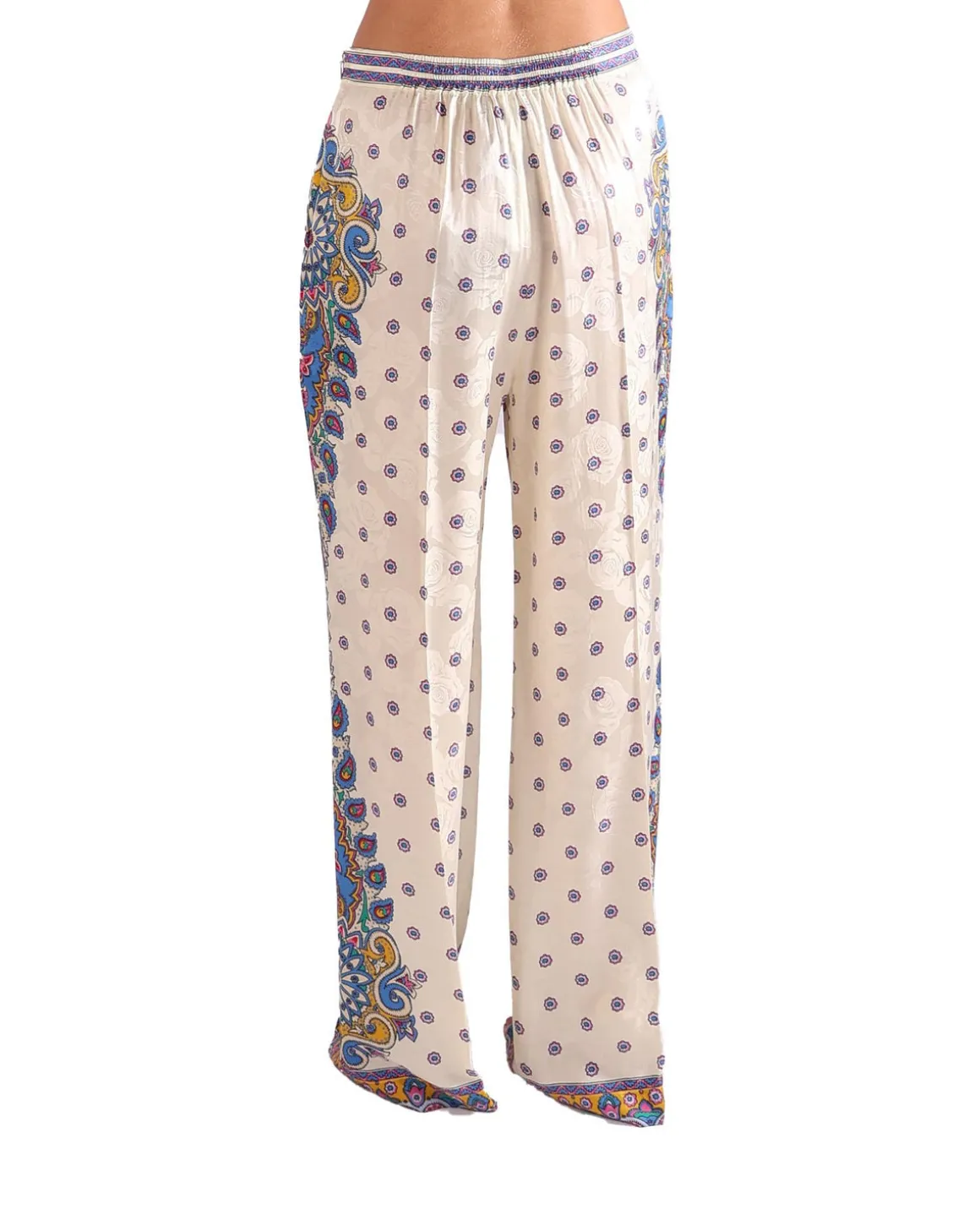 Deze wit gedessineerde broek van ETRO, gemaakt van pure zijde, combineert luxe met moeiteloze stijl. Het intrigerende patroon voegt een unieke en verfijnde touch toe, terwijl de lichte, ademende zijden stof zorgt voor comfort en elegantie. Verhoog je garderobe met deze veelzijdige, hoogwaardige broek die perfect is voor zowel casual als chique gelegenheden.