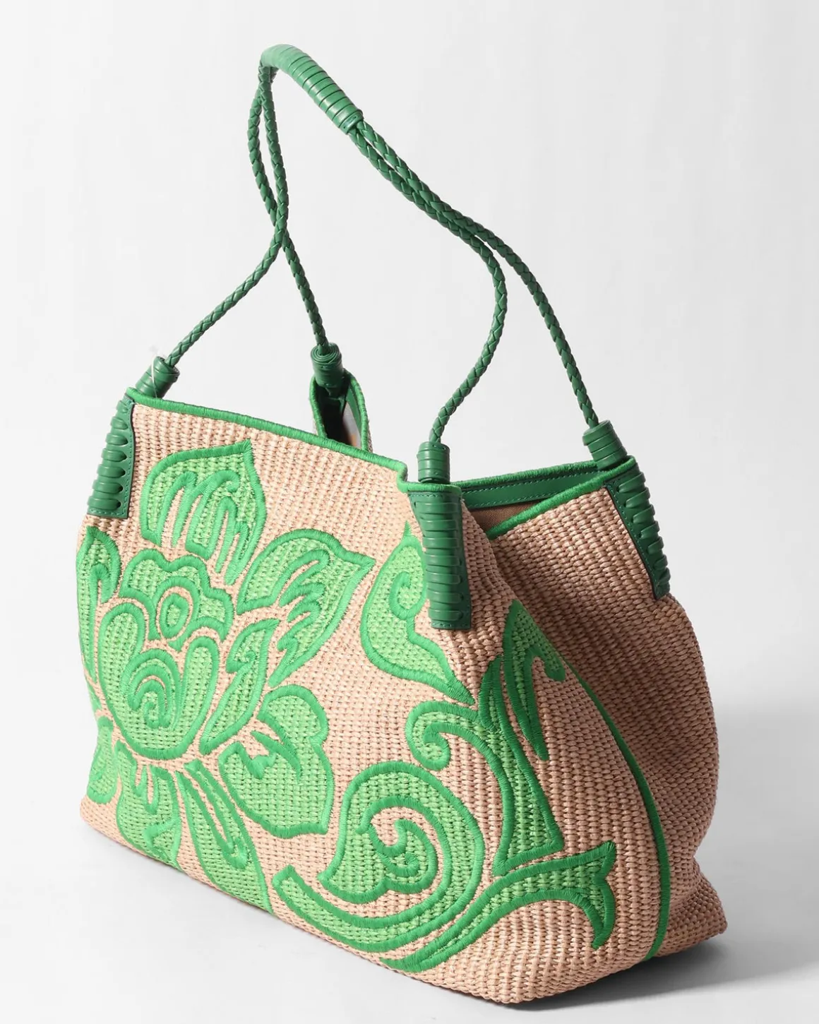 Deze rieten shopper van Etro straalt zomerse elegantie uit met zijn natuurlijke textuur en ruime ontwerp. De groene geborduurde print voegt een verfijnde en artistieke touch toe, typisch voor de kenmerkende stijl van het merk. Perfect voor een chique stranddag of een stijlvolle citytrip.