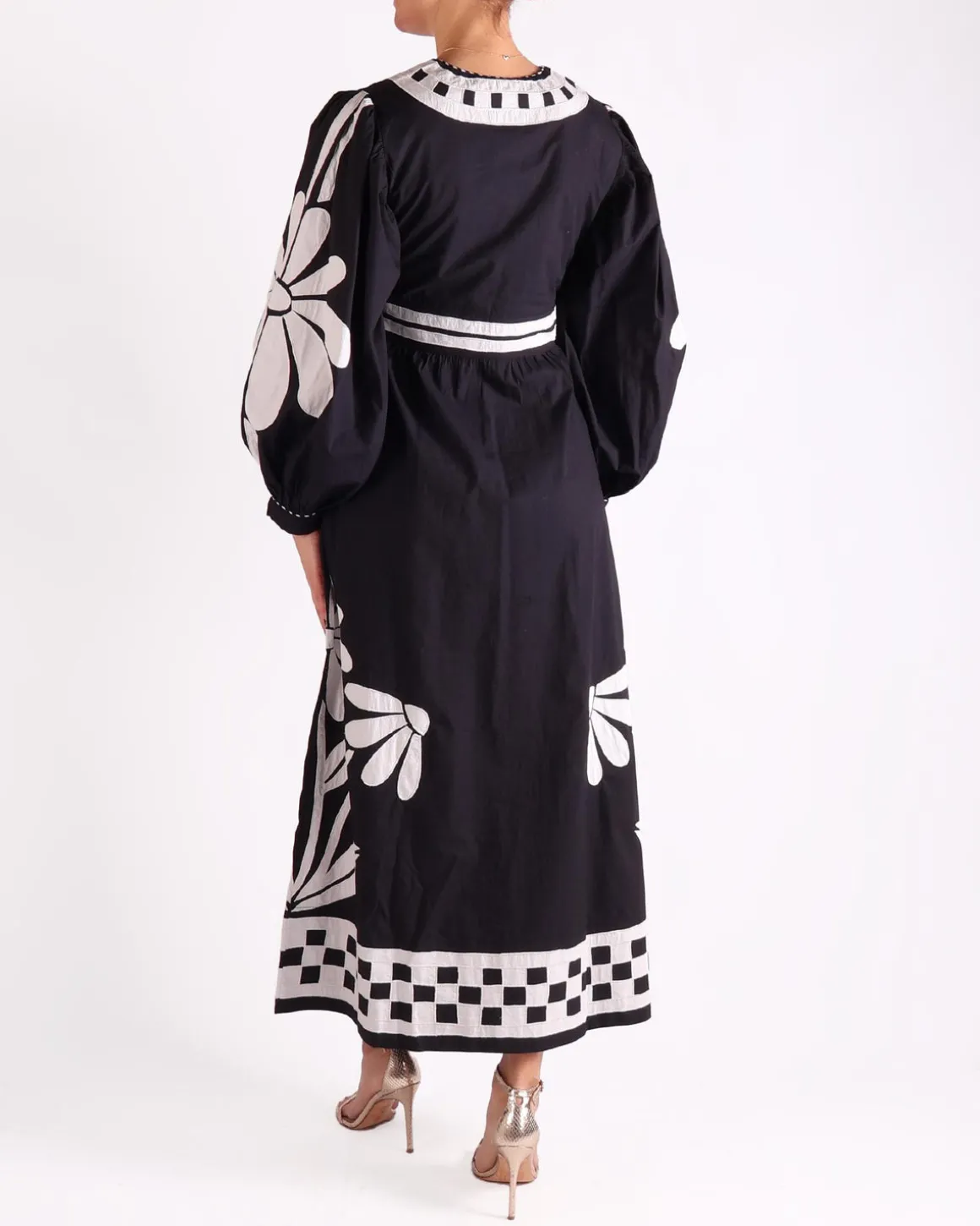 Deze zwarte jurk van FARM RIO heeft een gedurfde witte print die een opvallend contrast biedt, perfect om een statement te maken. De details bij de taille creëren een cinched effect, waardoor het silhouet flatterend wordt en de pasvorm wordt geaccentueerd. Gemaakt van hoogwaardige stof, biedt het zowel comfort als stijl voor verschillende gelegenheden.