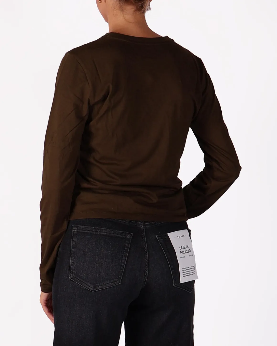 De khaki longsleeve top van Frame Jeans is een veelzijdig kledingstuk, gemaakt van zacht en ademend materiaal dat comfort biedt in elke situatie. De subtiele khaki kleur geeft de top een moderne, natuurlijke uitstraling, perfect voor zowel casual als meer geklede combinaties. De tijdloze pasvorm en hoogwaardige afwerking maken deze longsleeve een must-have in elke garderobe.
