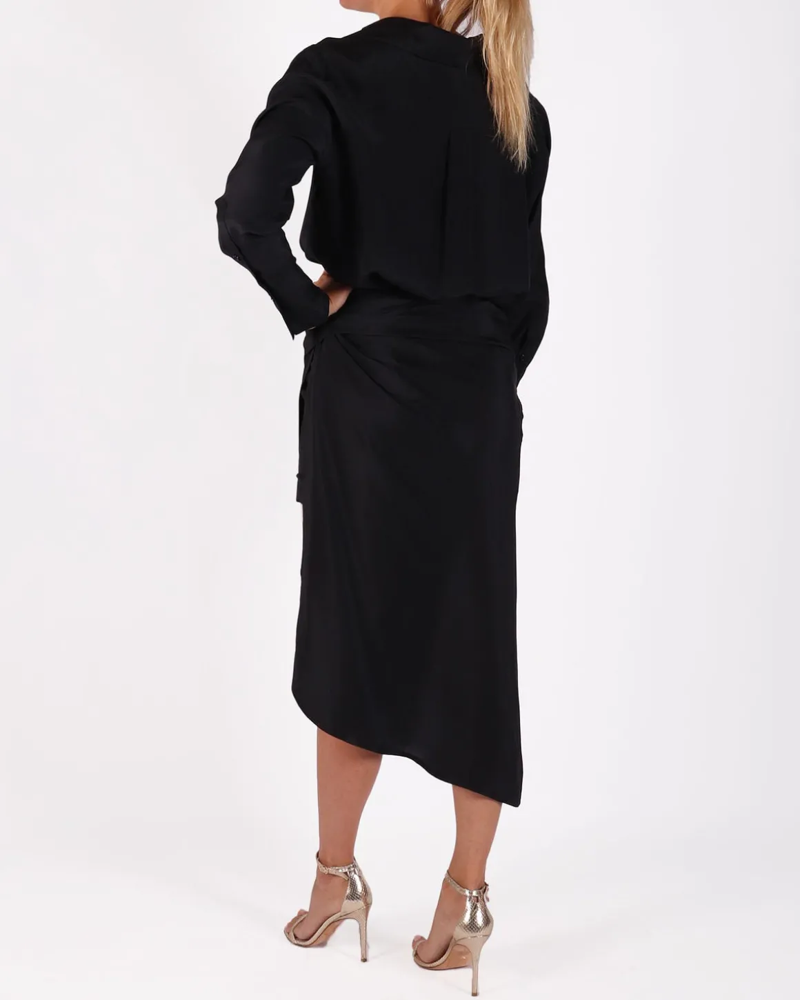 De zwarte asymmetrische rok van Gauge81 met een hoge taille is een statementstuk dat moeiteloos een edgy en toch elegante look creëert. De asymmetrische snit voegt een eigentijds en dynamisch element toe aan de rok, terwijl de hoge taille de nadruk legt op het silhouet. Deze veelzijdige rok kan zowel worden gedragen voor formele gelegenheden als voor een avondje uit, en biedt eindeloze stylingmogelijkheden voor een gedurfde en verfijnde uitstraling.