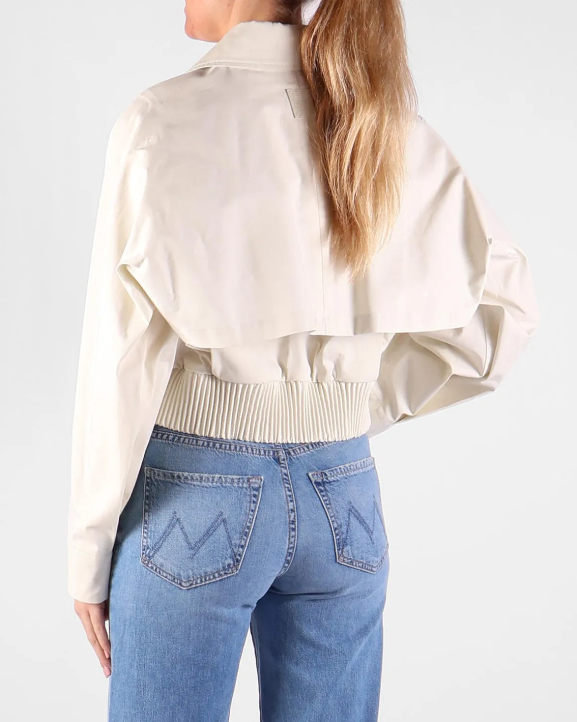 Deze Lanvin-jas heeft een uniek, op maat gemaakte ontwerp, met een innovatieve overlay aan de ene kant die een stijlvolle dubbele laag creëert. De witte kleur voegt een elegante en tijdloze uitstraling toe, perfect voor zowel formele als semi-formele gelegenheden. De asymmetrische structuur zorgt voor een moderne, modieuze look, terwijl het tegelijkertijd klassieke verfijning behoudt. Met vakmanschap gemaakt, biedt het zowel comfort als high-end stijl.