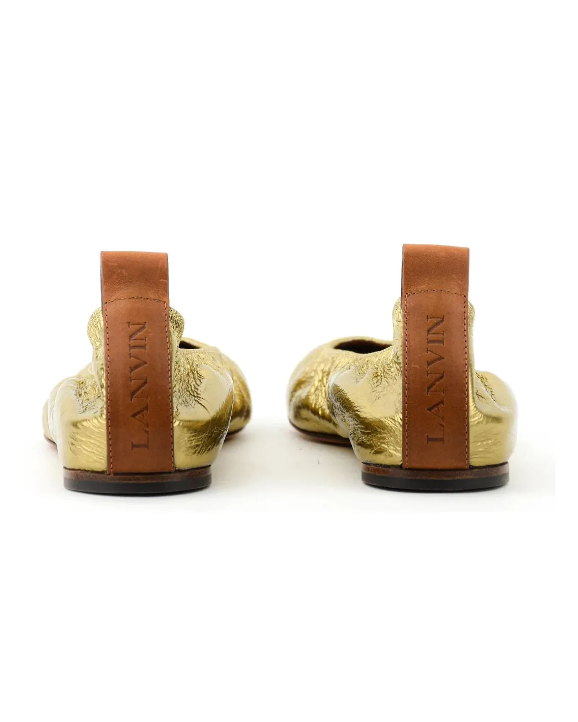 De Lanvin Ballerina Flat combineert elegantie, eenvoud en comfort voor een chique, casual look. Gemaakt van metallic leer met een ronde neus en platte hak, is de schoen voorzien van een geperst Lanvin-logo aan de achterkant. De leren binnenzool is afgewerkt met een gestikt Lanvin-label voor een kenmerkende touch.