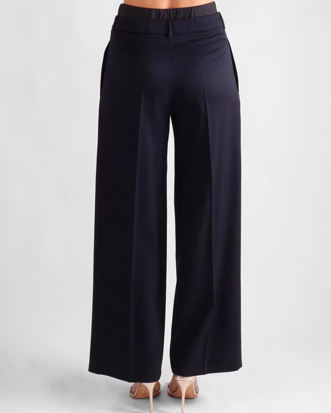 Deze donkerblauwe broek van LIVIANA CONTI heeft een uniek ontwerp met een extra laag tailleband, waardoor het lijkt alsof het een dubbele broek is. De getailleerde pasvorm en moderne details bieden zowel stijl als comfort, waardoor ze perfect zijn voor verschillende gelegenheden. De hoogwaardige stof zorgt voor duurzaamheid, terwijl de strakke silhouet een flatterende vorm biedt.