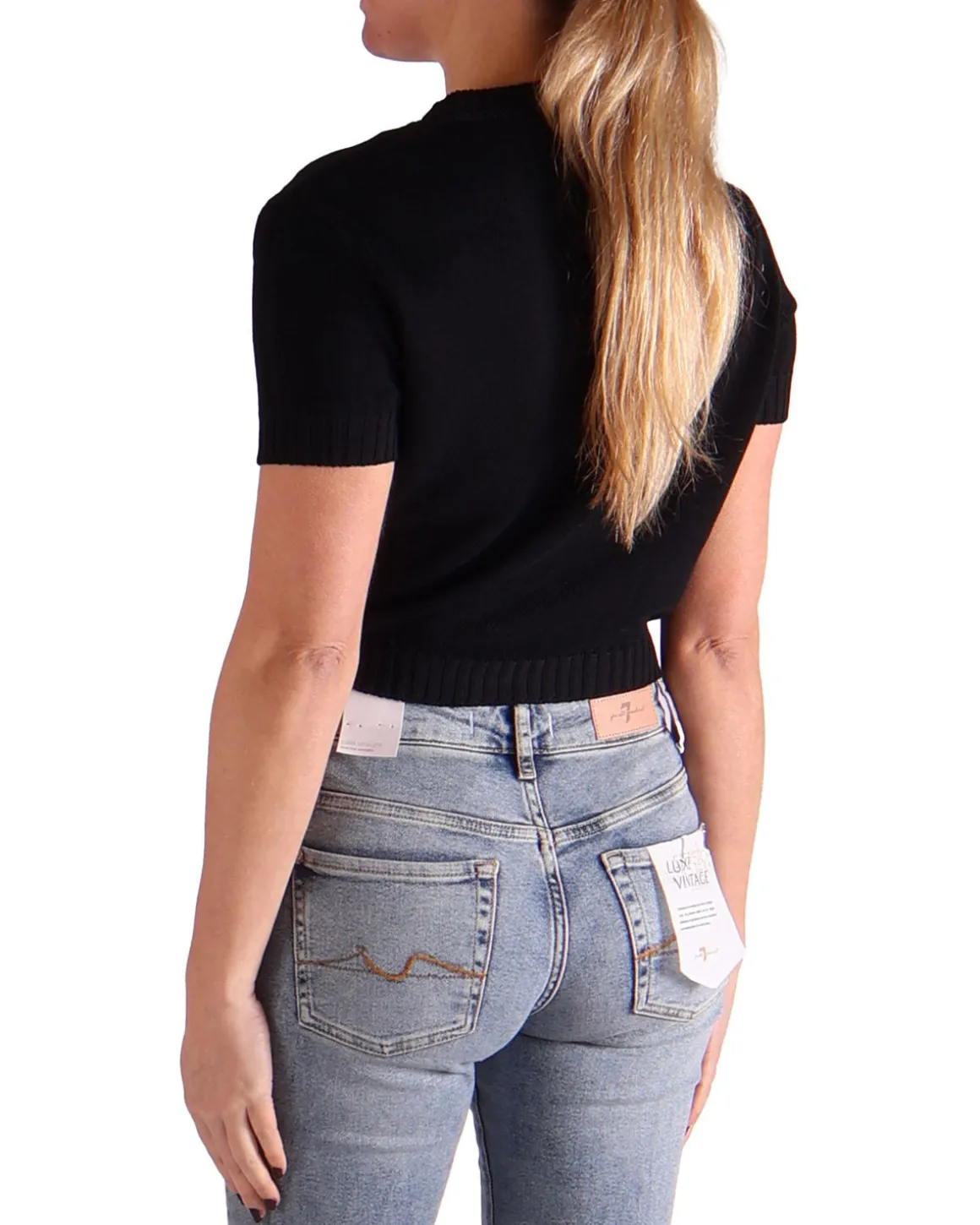 Deze korte zwarte top van LIVIANA CONTI heeft een strak, minimalistisch ontwerp met een flatterende pasvorm. Gemaakt van zacht, hoogwaardig materiaal, biedt het zowel comfort als stijl voor elke gelegenheid. De veelzijdige kleur en het eenvoudige ontwerp maken het gemakkelijk te combineren met rokken, jeans of broeken.