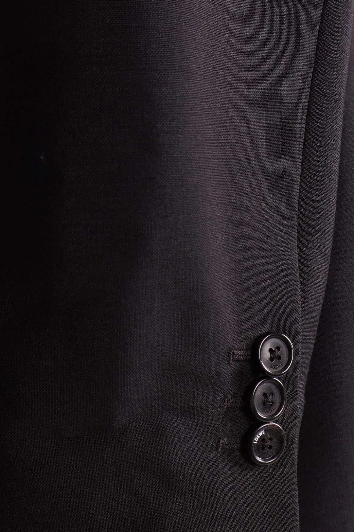 Deze zwarte blazer van Loewe is een perfecte balans tussen klassieke verfijning en moderne flair. Het strakke, gestructureerde ontwerp wordt gekarakteriseerd door een subtiele twist in de afwerking, wat de blazer een unieke, eigentijdse uitstraling geeft. Gemaakt van hoogwaardige stoffen, is dit een tijdloos stuk dat zich gemakkelijk leent voor zowel formele als casual styling.