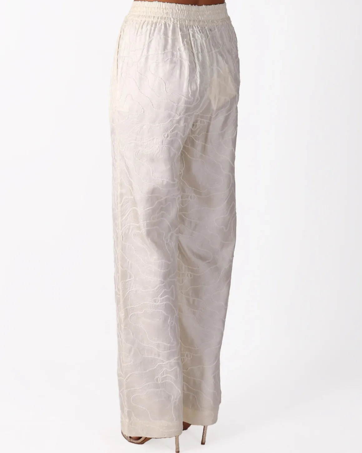 Deze crèmekleurige pantalon van Loulou Studio biedt een verfijnde uitstraling met zijn hoge taille en elegante patroon. Het lichte, ademende materiaal zorgt voor een comfortabele pasvorm, terwijl het tijdloze ontwerp veelzijdigheid en stijl toevoegt aan elke outfit. Ideaal voor zowel formele als casual settings, deze pantalon is een uitstekende keuze voor een chique look.