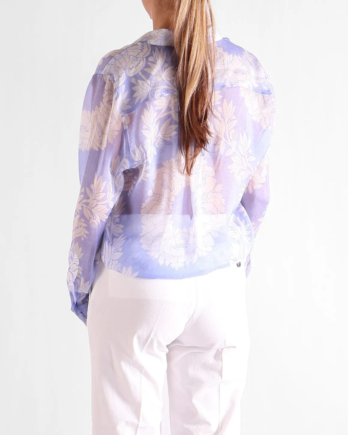 Deze blauwe blouse van Paul & Joe heeft een all-over wit bloemenpatroon, wat een frisse en vrouwelijke uitstraling geeft aan je garderobe. De transparante stof zorgt voor een delicate, luchtige uitstraling, waardoor het perfect is om te combineren of te dragen met een statement stuk eronder. Het elegante ontwerp kan zowel casual als chique gedragen worden voor verschillende gelegenheden.