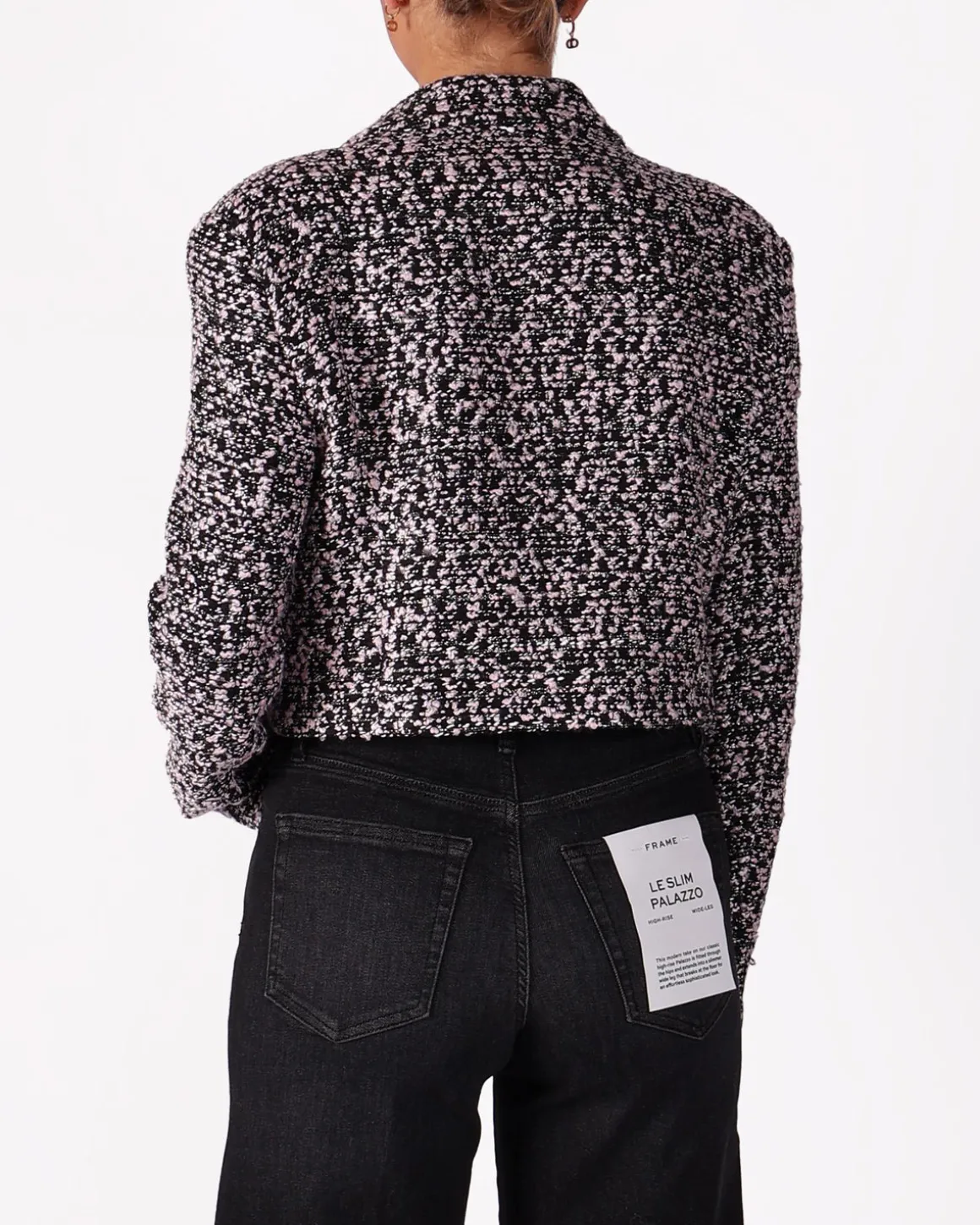 De korte blazer van Sage & Ivy combineert stijl en verfijning met zijn elegante zwart-roze kleurenschema. Het strakke silhouet wordt geaccentueerd door subtiele roze details, die een speelse touch geven aan het klassieke ontwerp. Perfect voor zowel zakelijke als casual outfits, voegt deze blazer een moderne flair toe aan elke garderobe.