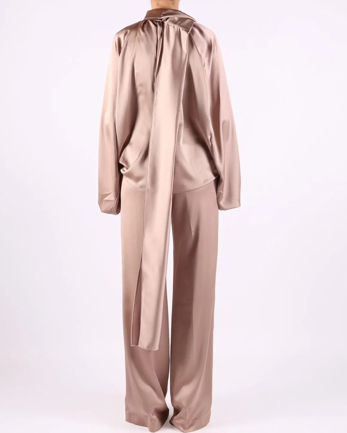 Deze taupekleurige satijnen blouse van The Andamane straalt luxe en verfijning uit. De glanzende stof en soepele pasvorm zorgen voor een elegante en tijdloze look. Perfect voor zowel chique gelegenheden als een stijlvolle casual outfit.