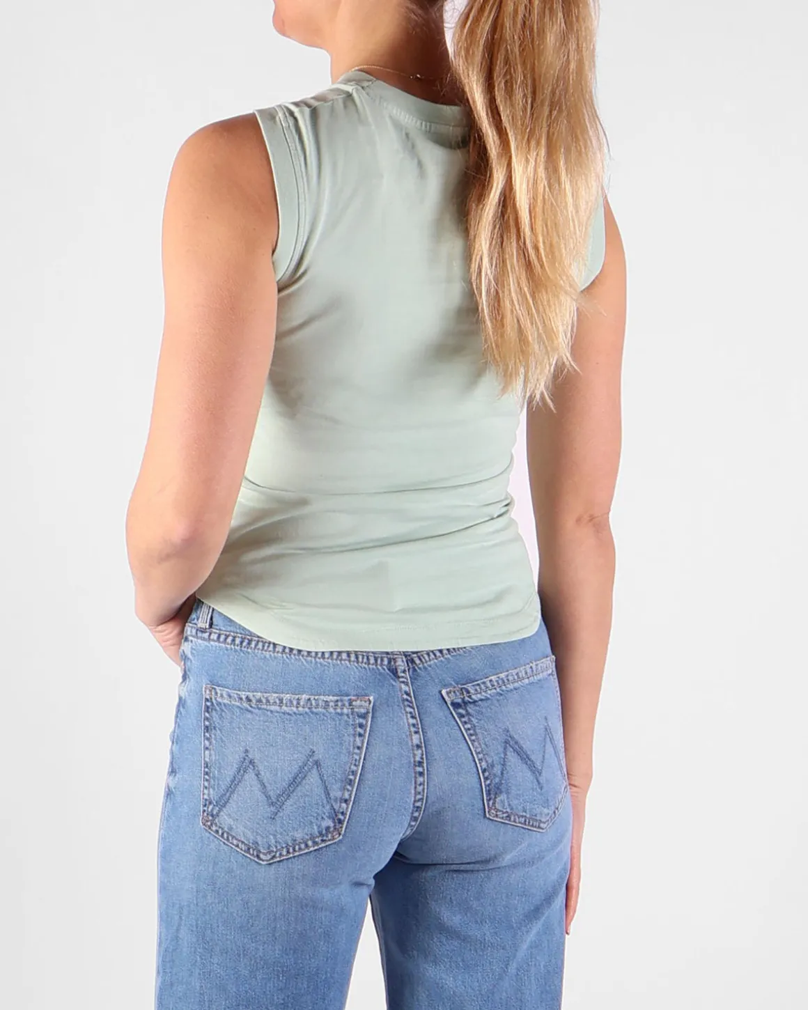 Dit mouwloze pastelgroene T-shirt van The Attico biedt een frisse en levendige uitstraling. Het mouwloze ontwerp is perfect voor warme dagen of om onder jassen te dragen tijdens koelere periodes. De zachte pastelgroene kleur geeft het een lichte, luchtige sfeer, terwijl het minimalistische ontwerp het een veelzijdig kledingstuk maakt dat zowel casual als meer gekleed gedragen kan worden. Gemaakt van hoogwaardige stof, zorgt het voor zowel comfort als stijl.