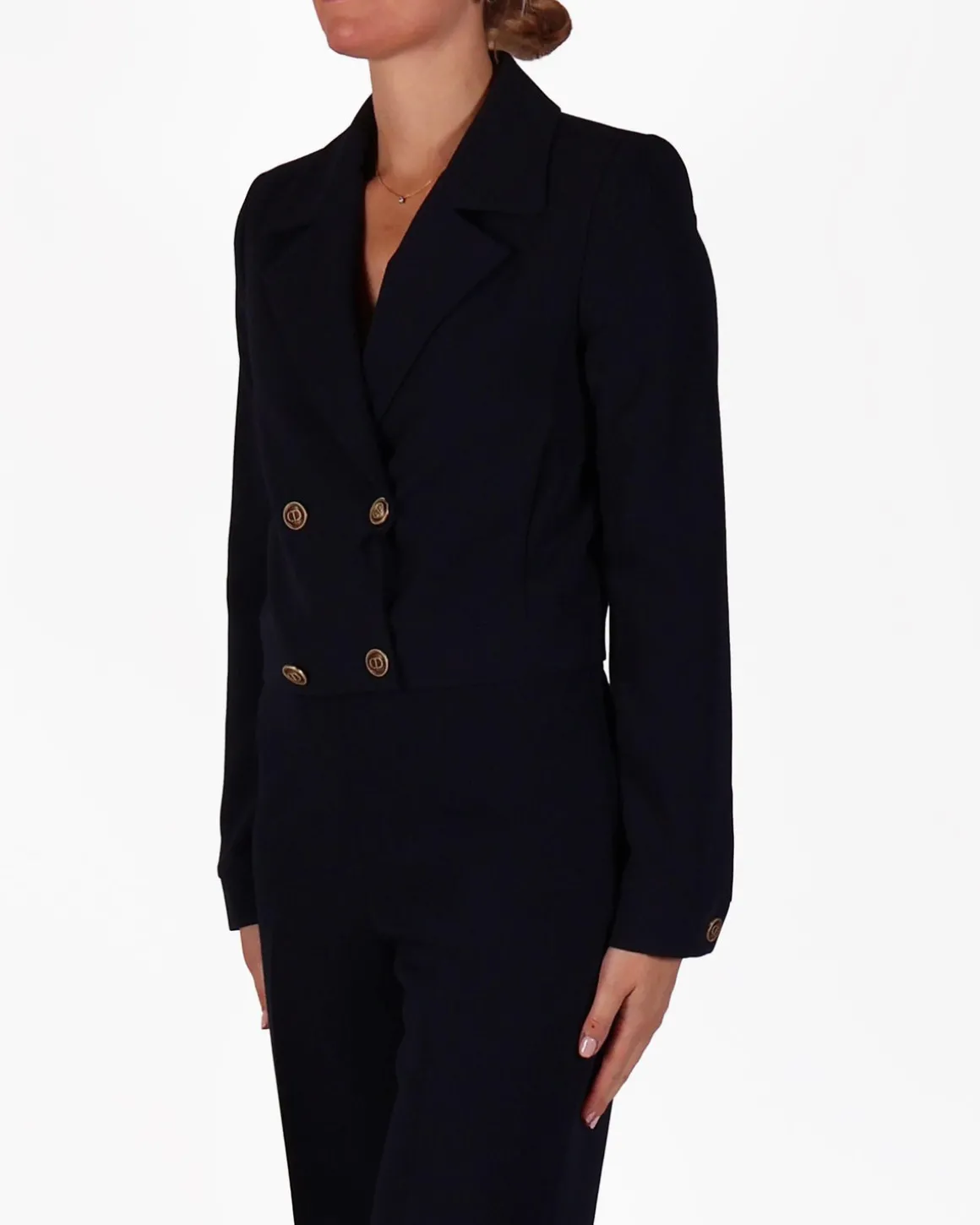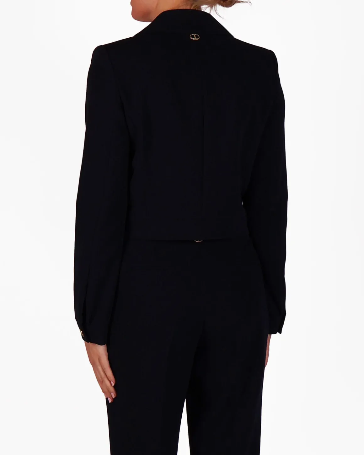 Deze korte donkerblauwe blazer van Twinset is een trendy en veelzijdige keuze voor elke gelegenheid. De compacte snit accentueert de taille en biedt een moderne uitstraling, terwijl de rijke kleur zorgt voor een chique look. Perfect te combineren met zowel jeans als elegante broeken, deze blazer is ideaal voor zowel casual als formele outfits.