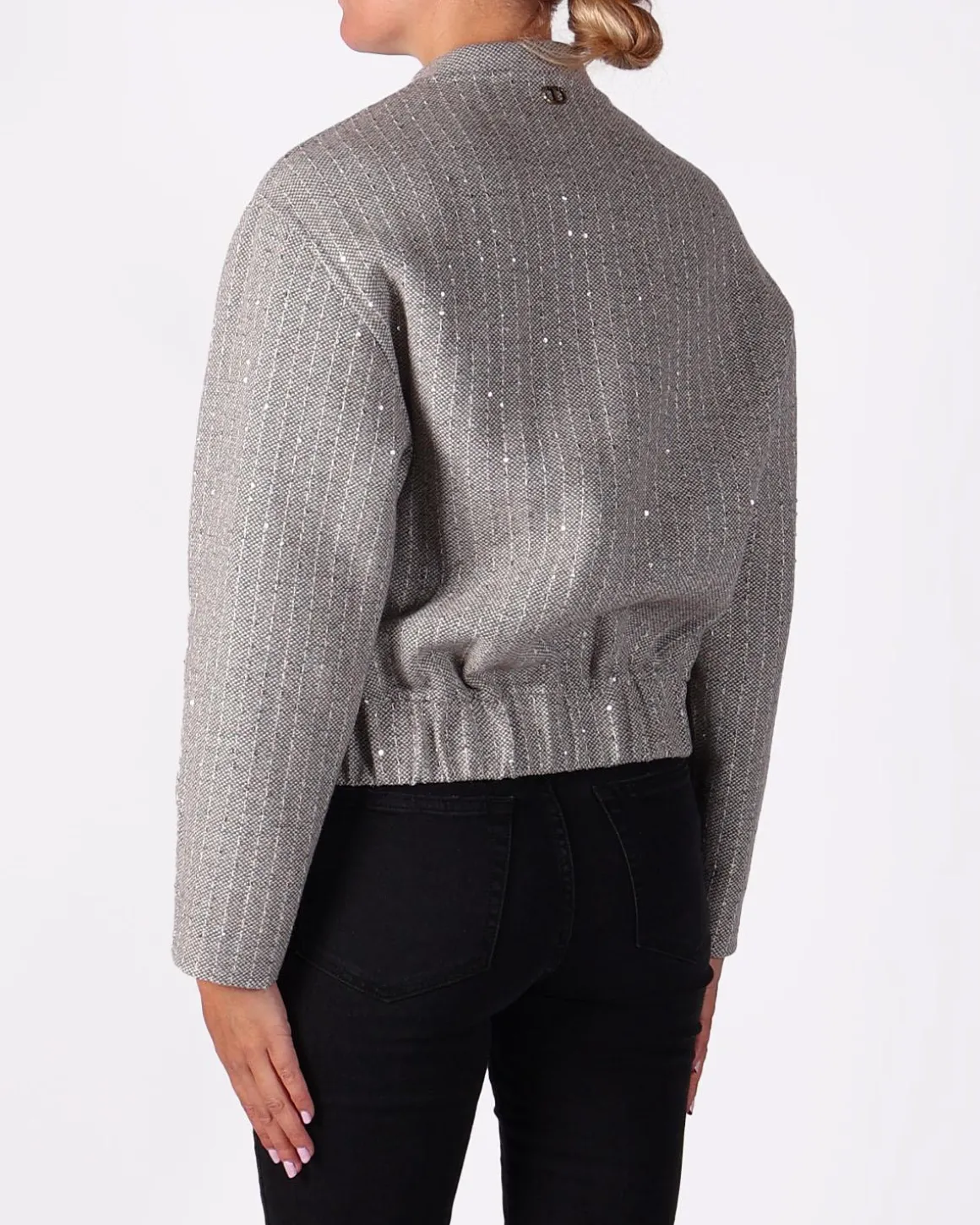 Deze grijze blazer van Twinset is een stijlvol en veelzijdig stuk dat je garderobe verrijkt. Gemaakt van hoogwaardige materialen, biedt de blazer een verfijnde pasvorm en een moderne uitstraling. Ideaal voor zowel zakelijke als casual gelegenheden, voegt het een elegante touch toe aan elke outfit.