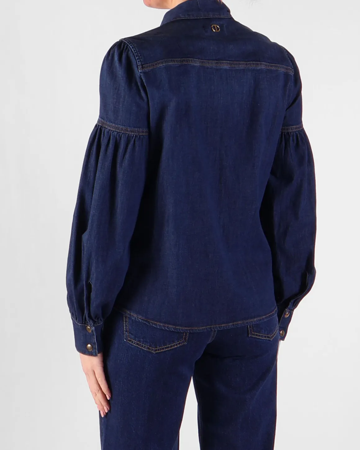 Deze blauwe denim blouse van TWINSET heeft een kraag die je kunt strikken, wat een stijlvolle en aanpasbare uitstraling geeft aan het ontwerp. De klassieke denim stof biedt zowel comfort als duurzaamheid, terwijl de strikbare kraag een unieke, vrouwelijke flair toevoegt. Een veelzijdig stuk dat zowel casual als chique gedragen kan worden voor verschillende gelegenheden.