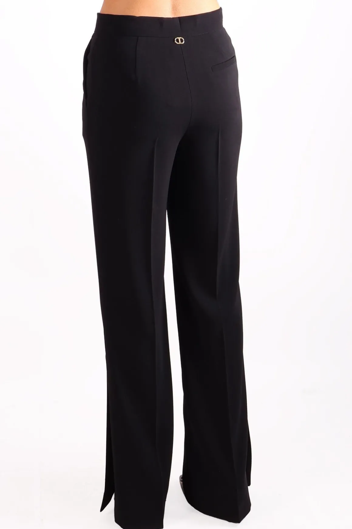 Deze zwarte pantalon van Twinset met een hoge taille is een veelzijdige en tijdloze keuze voor elke gelegenheid. De elegante snit accentueert de taille en zorgt voor een flatterend silhouet, terwijl het luxe materiaal comfort en stijl biedt. Perfect te combineren met een blouse of een casual top voor zowel een chique als een ontspannen look.