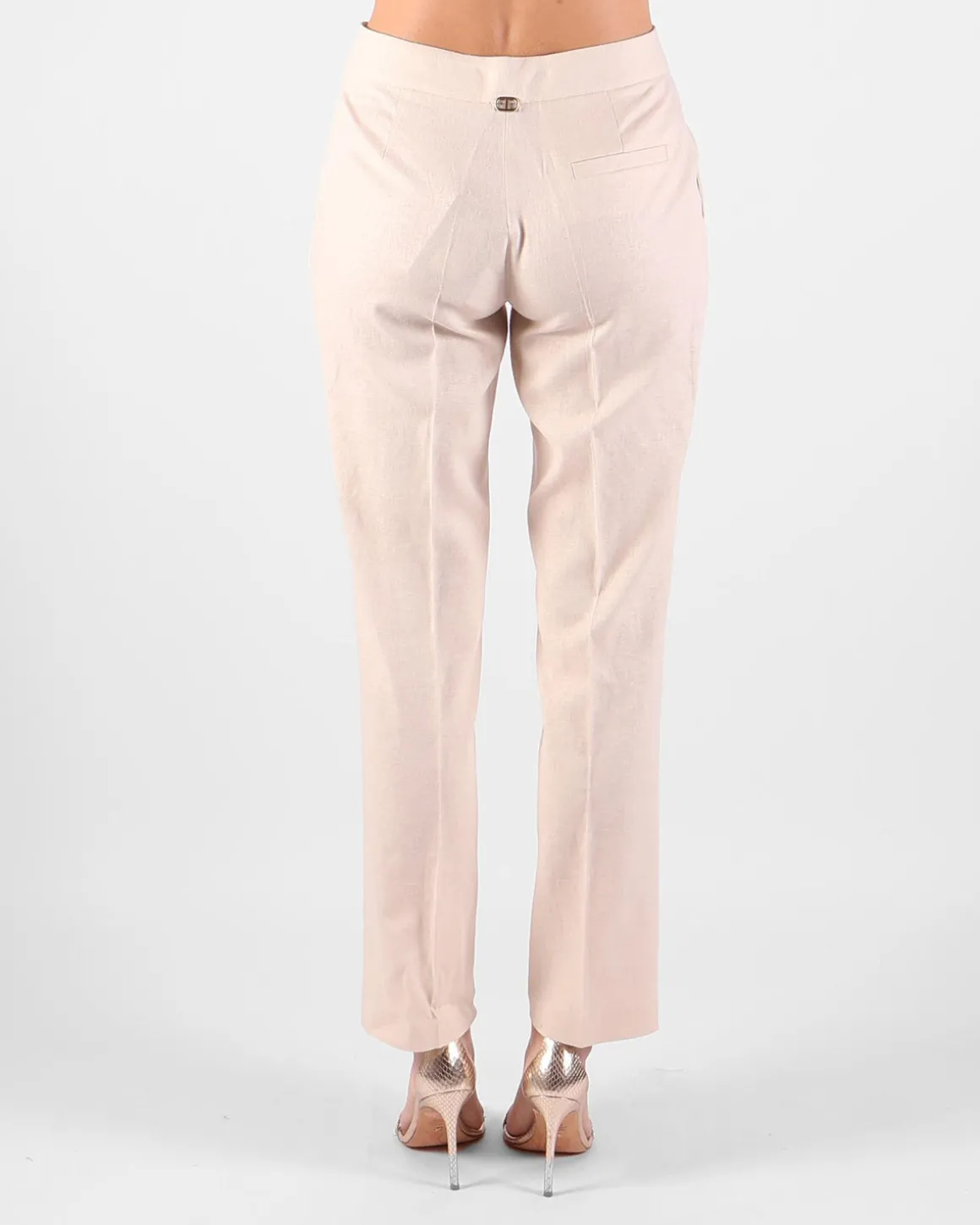 Deze ivoorkleurige formele broek van TWINSET heeft een chique en verfijnde uitstraling met een getailleerde pasvorm die de figuur flatteert. Het zachte, hoogwaardige materiaal biedt comfort gedurende de hele dag, terwijl de elegante ivoorkleur een frisse en verfijnde touch aan je garderobe toevoegt. Perfect voor zowel professionele als formele gelegenheden, en ook ideaal voor zomerse uitjes dankzij het ademende materiaal. Combineer ze gemakkelijk met een blouse of een getailleerd jasje voor een verzorgde look.