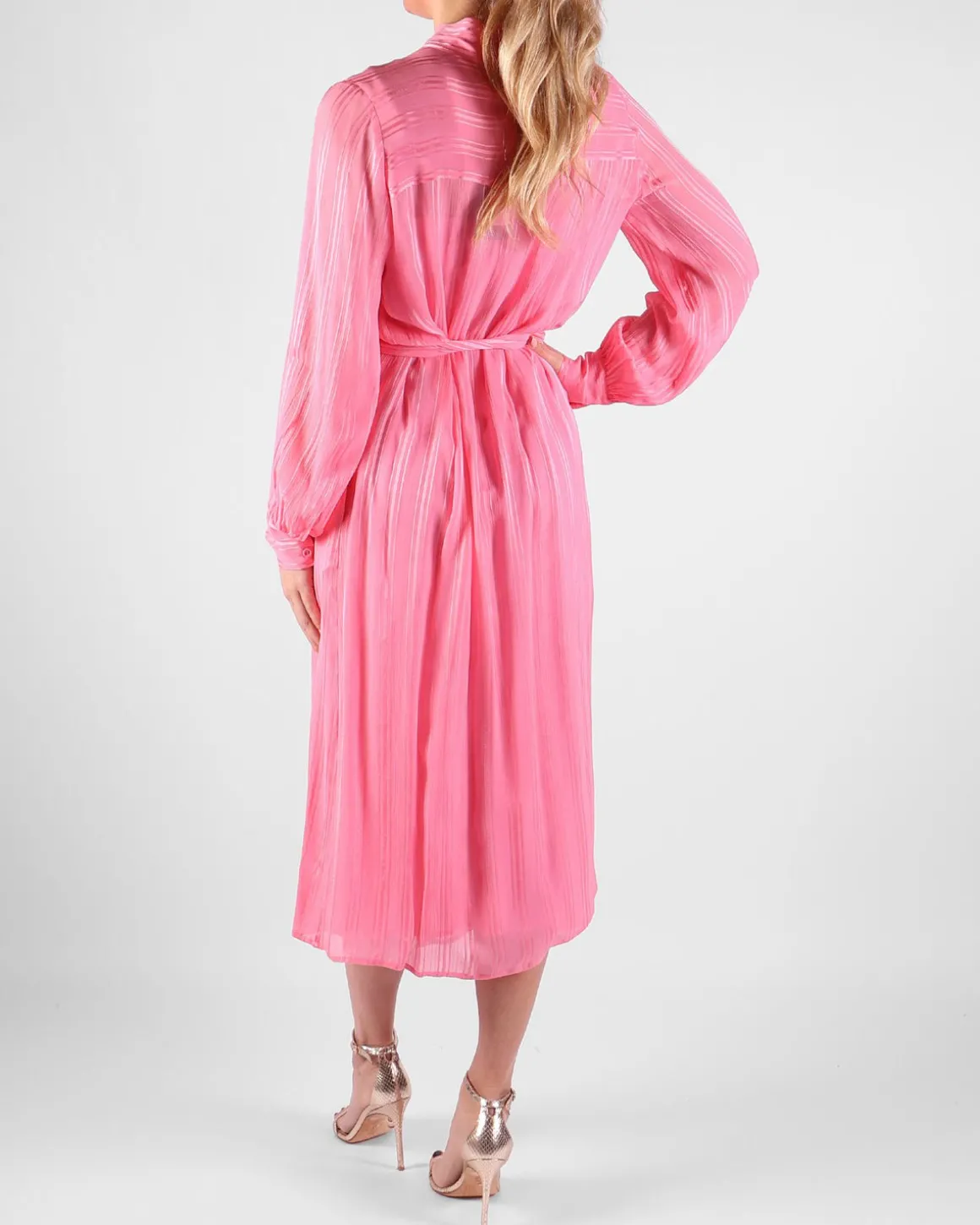 Deze roze jurk van Twinset heeft een vrouwelijke uitstraling met lange mouwen en een flatterende ceintuur die de taille accentueert. De knoopsluiting voegt een klassieke touch toe aan het ontwerp. Perfect voor zowel een chique als casual look, afhankelijk van de accessoires.