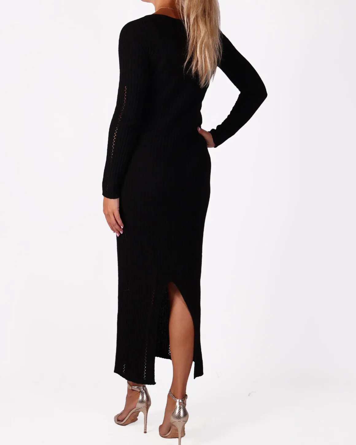 Deze zwarte lange jurk van Twinset straalt elegantie uit door zijn vloeiende silhouet en verfijnde pasvorm. De jurk heeft subtiele details zoals een delicate V-hals en een licht uitlopende rok, wat hem geschikt maakt voor zowel formele als informele gelegenheden. Gemaakt van hoogwaardige materialen, biedt deze jurk zowel comfort als tijdloze stijl.
