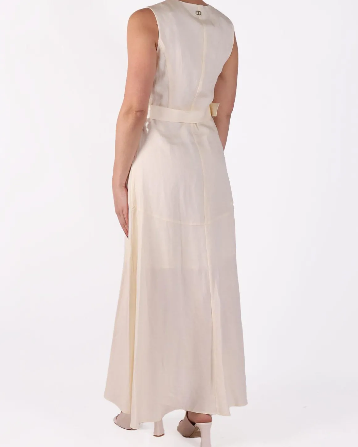 Ontdek de tijdloze elegantie van Twinset met onze prachtige ivoorkleurige jurk voor dames. Met zijn verfijnde ontwerp en zachte stof straalt deze jurk moeiteloze stijl uit. Laat je inspireren door de ingetogen luxe en tijdloze charme van Twinset.
