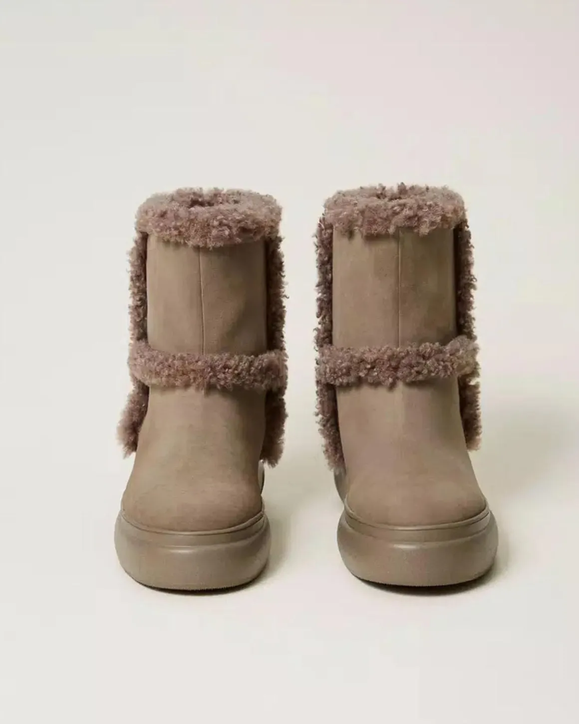 Deze taupe boots van Twinset zijn de perfecte mix van stijl en comfort, met een luxe uitstraling. De binnenkant is gevoerd met zacht imitatiebont, wat zorgt voor extra warmte en comfort tijdens koudere dagen. Combineer ze met je favoriete jeans of een jurk voor een trendy look die zowel chic als praktisch is.