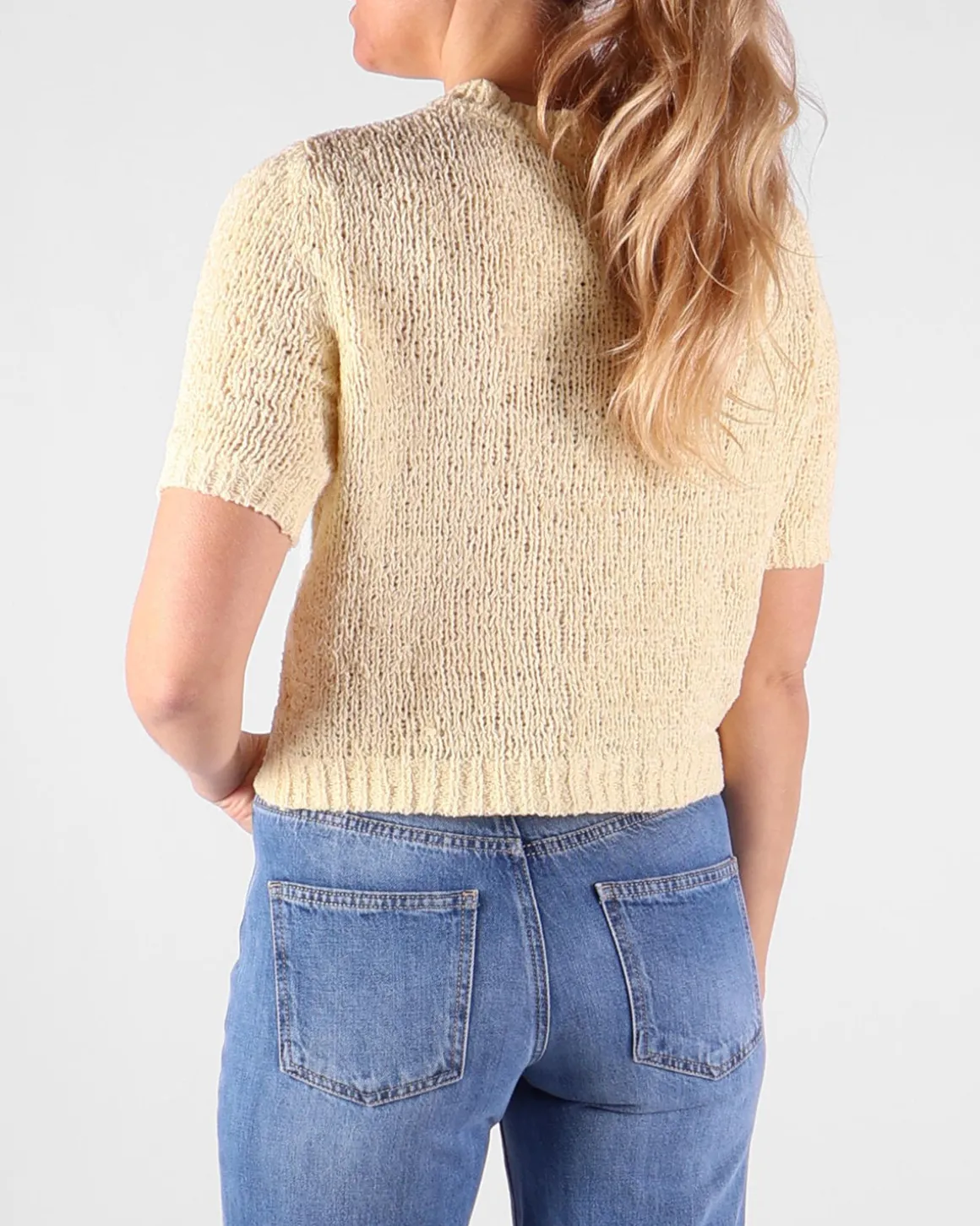 Deze lichtgele gebreide top van Twinset is een stijlvolle en comfortabele keuze. Met korte mouwen en een subtiel logo op de borst straalt hij eenvoud en elegantie uit. Perfect voor een casual-chique look op zonnige dagen.