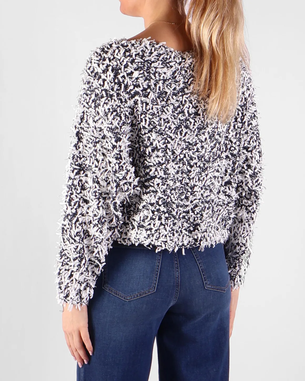 Deze sweater van Twinset heeft een unieke combinatie van witte en donkerblauwe, textuurrijke dikke draden die uitsteken, wat zorgt voor een opvallend en onderscheidend ontwerp. De tastbare textuur voegt diepte en interesse toe, waardoor dit stuk uitblinkt in elke casual of semi-casual look. Gemaakt van een gezellige stof biedt het zowel warmte als comfort zonder stijl op te offeren. Perfect om te dragen over andere lagen of solo, deze sweater voegt een moderne twist toe aan je garderobe.
