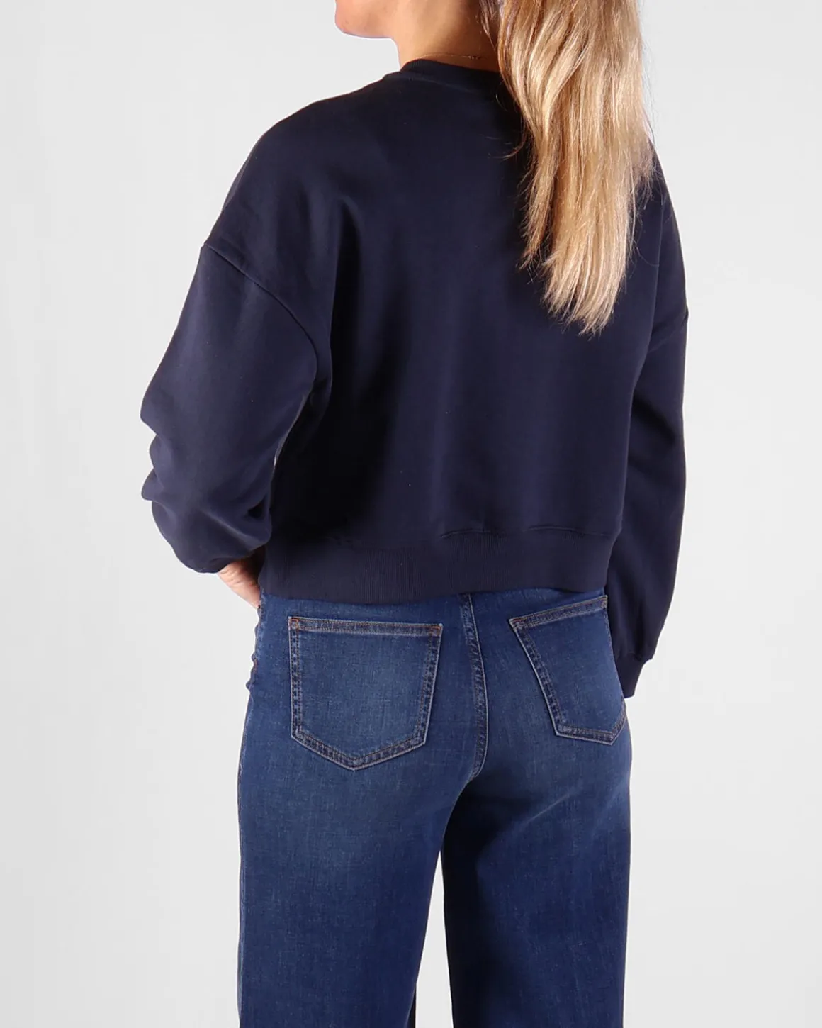 Deze donkerblauwe sweater van Twinset heeft een stijlvolle sleutelgatopening aan de voorkant, die elegant is afgesloten met een gouden metalen Twinset-logo dat in elkaar grijpt, wat een luxueuze touch aan het ontwerp toevoegt. De rijke, diepe blauwe kleur past perfect bij de slanke en moderne silhouet, waardoor het ideaal is voor zowel casual als chiquere gelegenheden. Gemaakt van zachte, comfortabele stof biedt het zowel warmte als een flatterende pasvorm. Een uniek en veelzijdig stuk, deze sweater kan moeiteloos gecombineerd worden met jeans, rokken of broeken voor een chique uitstraling.