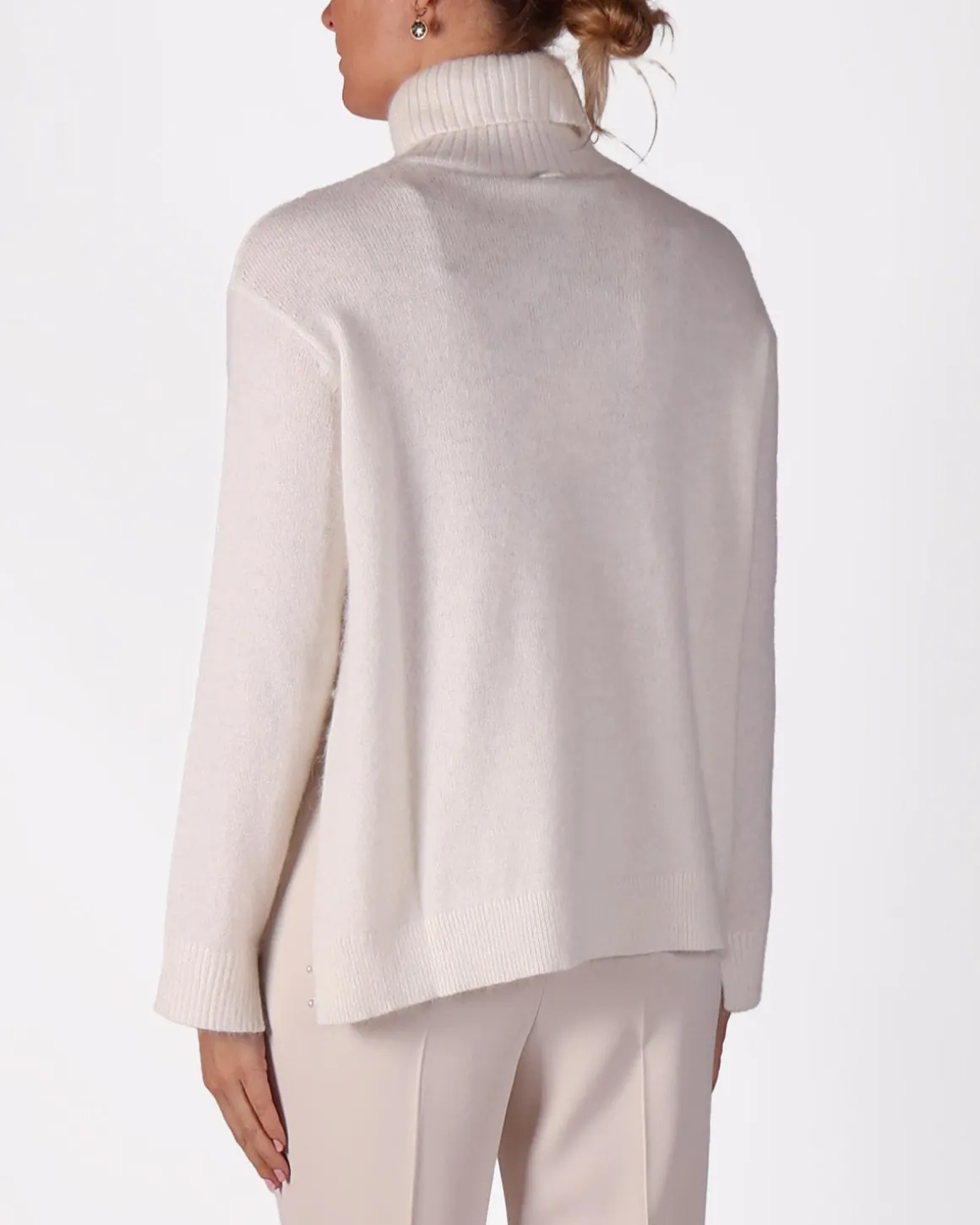 Deze ecru sweater van Twinset met een col en een split aan de zijkant is zowel chic als comfortabel. De parel details geven een elegante flair, terwijl de col en split zorgen voor een moderne uitstraling. Perfect te combineren met jeans of een rok, deze sweater is ideaal voor een stijlvolle, casual look.