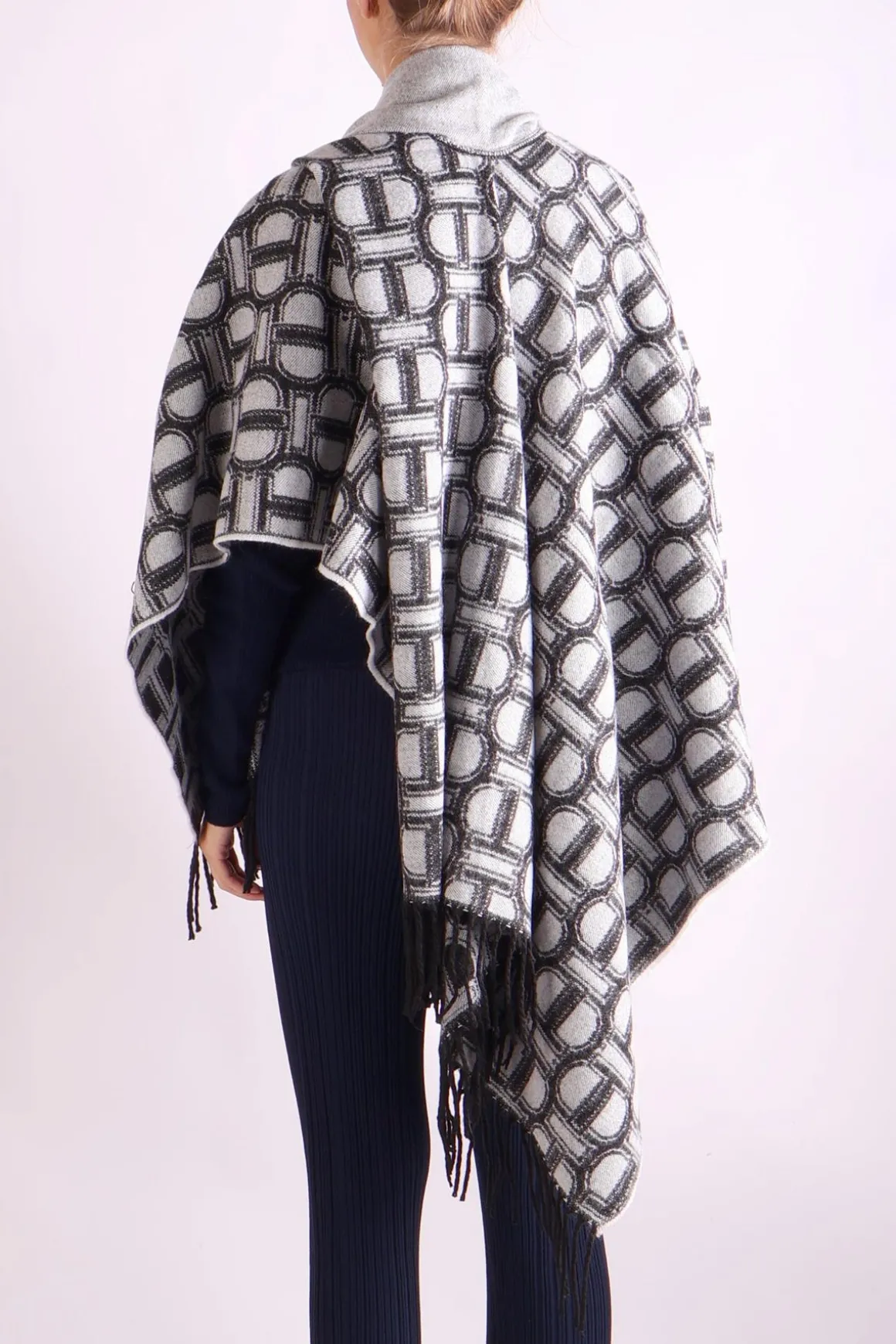Deze zwarte poncho van Twinset met logoprint is een stijlvolle en comfortabele aanvulling op je garderobe. Het losse ontwerp biedt veelzijdigheid en een trendy uitstraling, perfect voor zowel casual als chique outfits. Combineer het met een strakke jeans of een legging voor een moeiteloze, modieuze look.