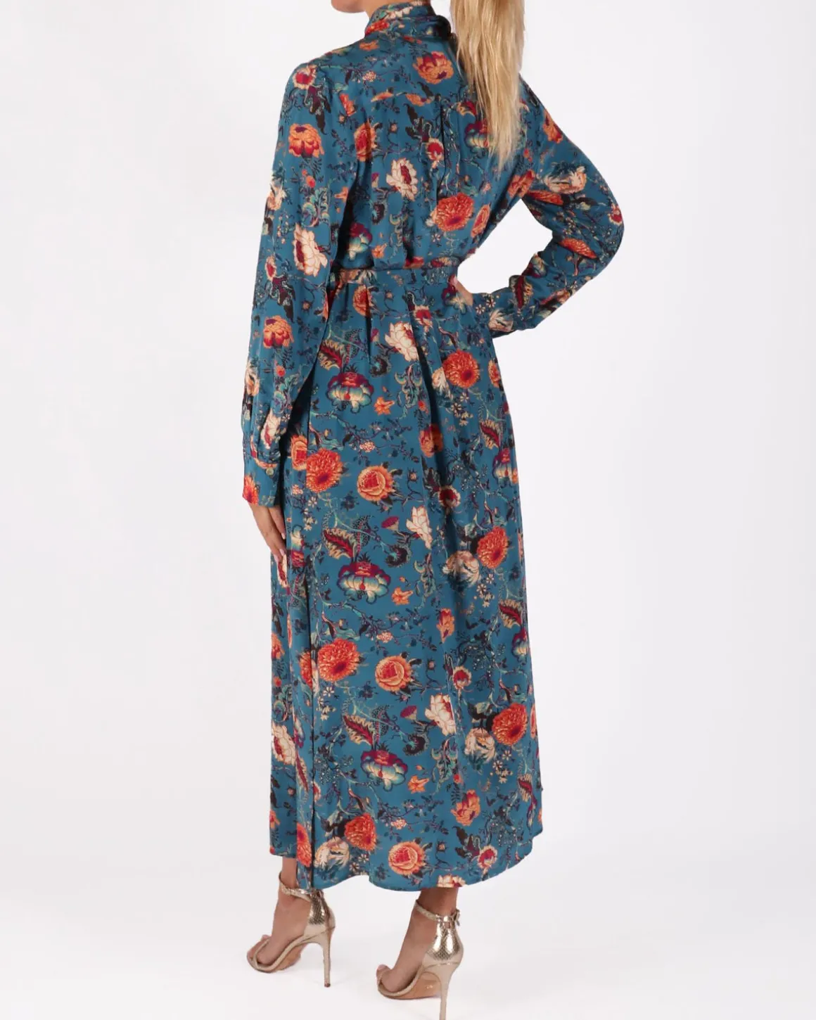 De blauwe midi-jurk van Ulla Johnson straalt een betoverende charme uit met zijn bloemenprint en lange mouwen. Het ontwerp combineert moeiteloos elegantie met speelse accenten, waardoor het perfect is voor diverse gelegenheden. Deze jurk belichaamt de kenmerkende romantiek en verfijning van Ulla Johnson, waardoor het een tijdloos stuk is voor elke seizoen.