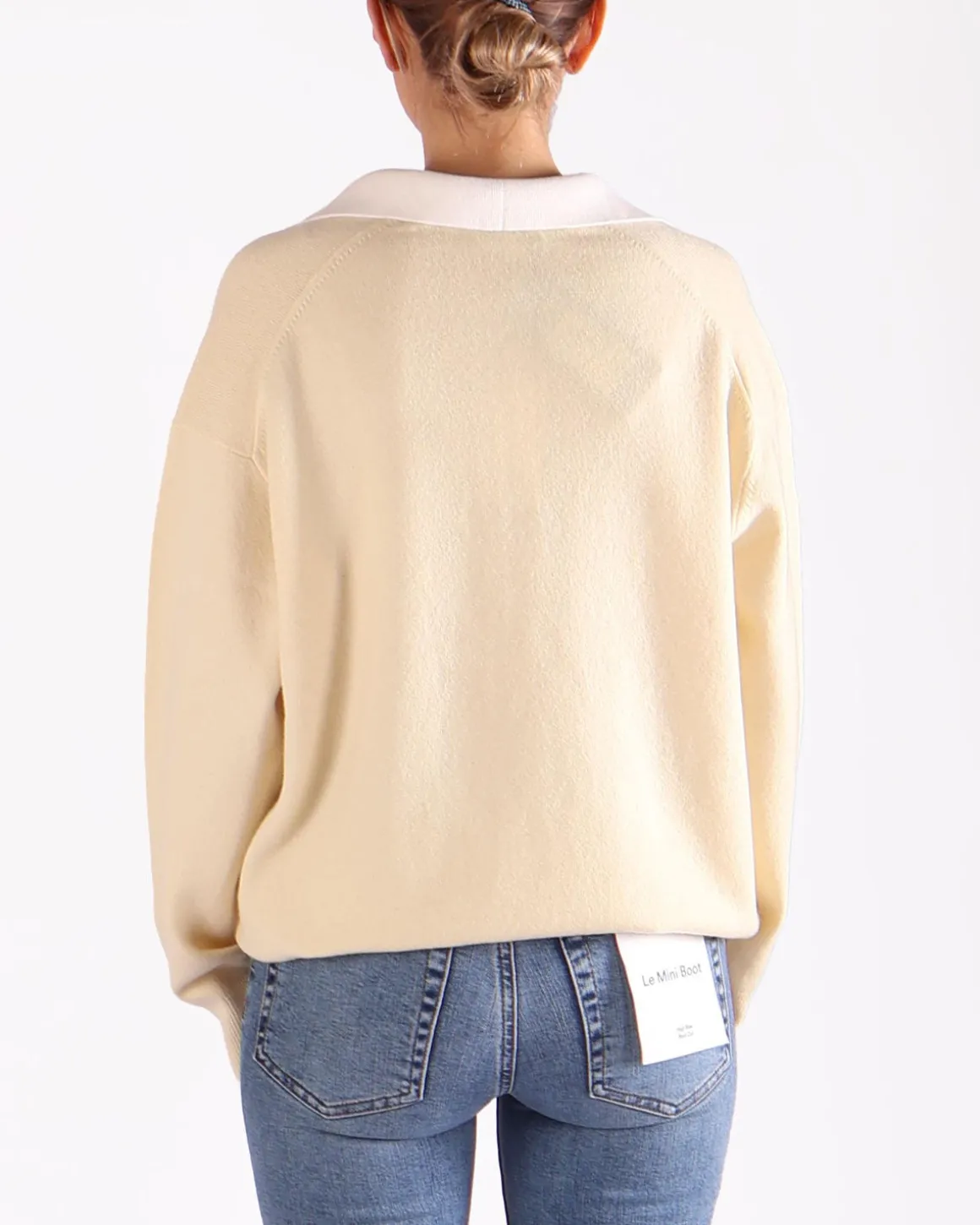 Deze crème kleurige gebreide top van Vince met een stijlvolle kraag combineert eenvoud met elegantie om je warm te houden. Gemaakt van zachte, hoogwaardige stof, biedt het een comfortabele pasvorm en een veelzijdig ontwerp dat zowel casual als chique gedragen kan worden voor elke gelegenheid. Verhoog je garderobe met dit chique, tijdloze stuk, perfect voor het dragen in laagjes of solo.