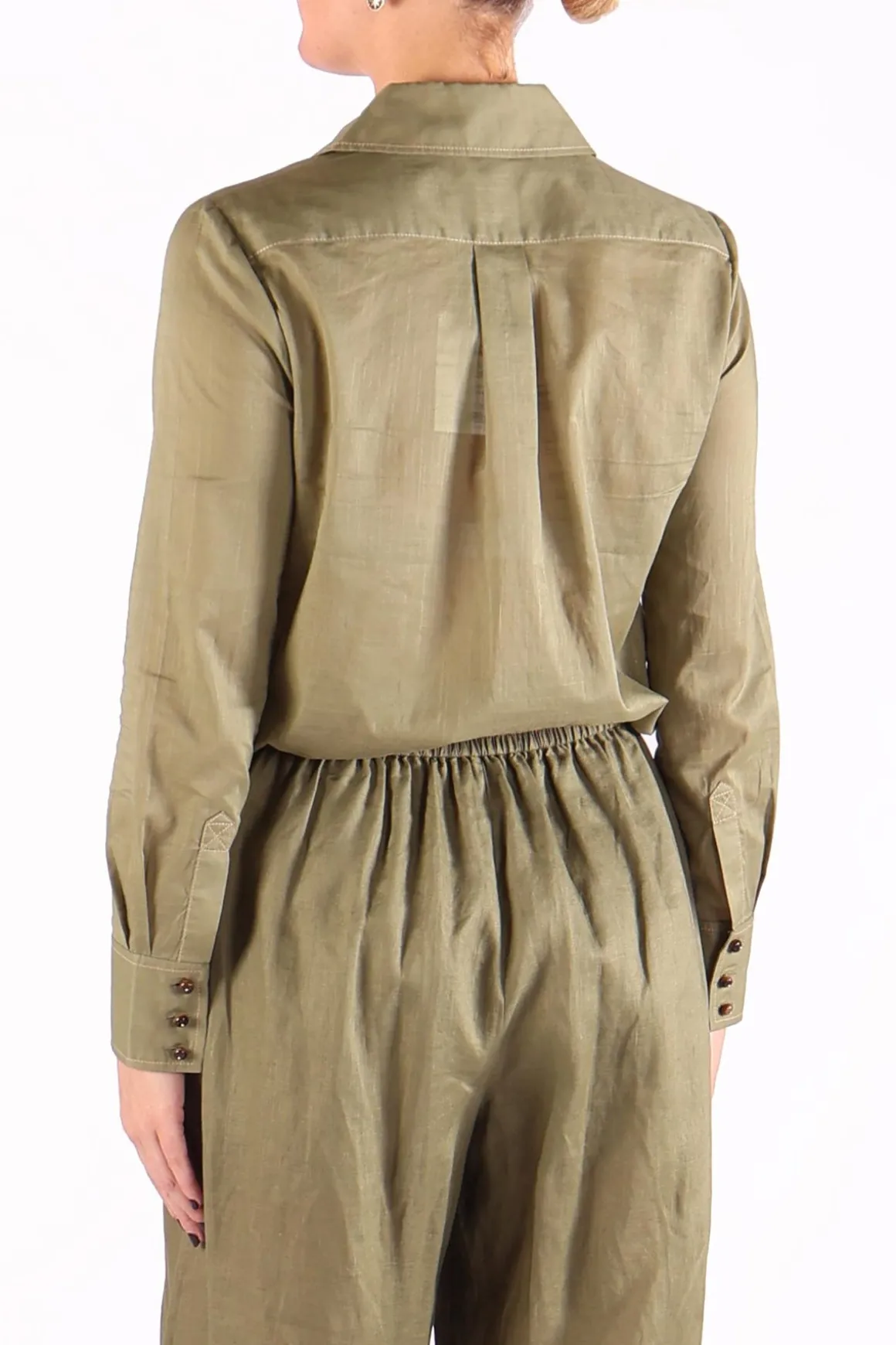 Deze elegante groene blouse van Zimmermann is een perfecte mix van verfijning en speelsheid. Gemaakt van luxe, ademende stoffen, zorgt het voor een comfortabele pasvorm en een flatterende uitstraling. De subtiele details en de unieke kleur maken deze blouse een veelzijdig stuk dat gemakkelijk te combineren is met zowel jeans als een elegante rok.