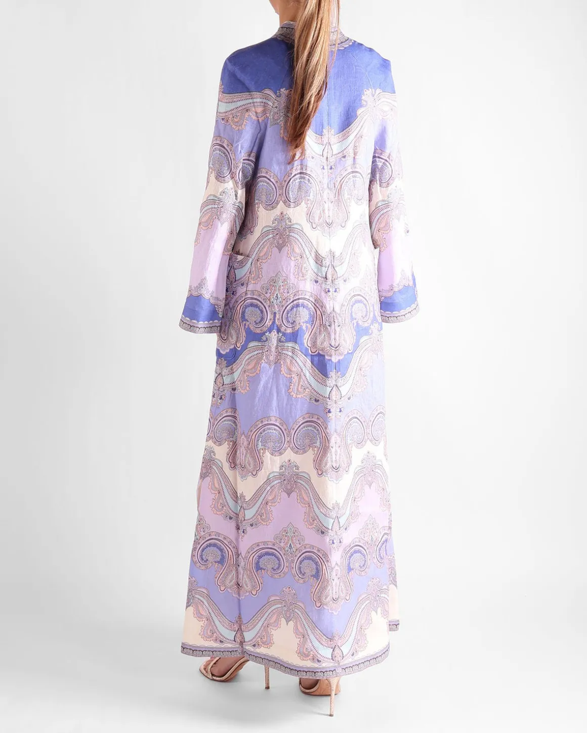 Deze maxi tuniek van Zimmermann, gemaakt van linnen, heeft een allover paisley print die een bohemien elegantie toevoegt. De vloeiende silhouet en verfijnde details maken het perfect voor zowel casual als chique gelegenheden. De linnen stof biedt structuur en duurzaamheid, terwijl het toch een elegante uitstraling behoudt.
