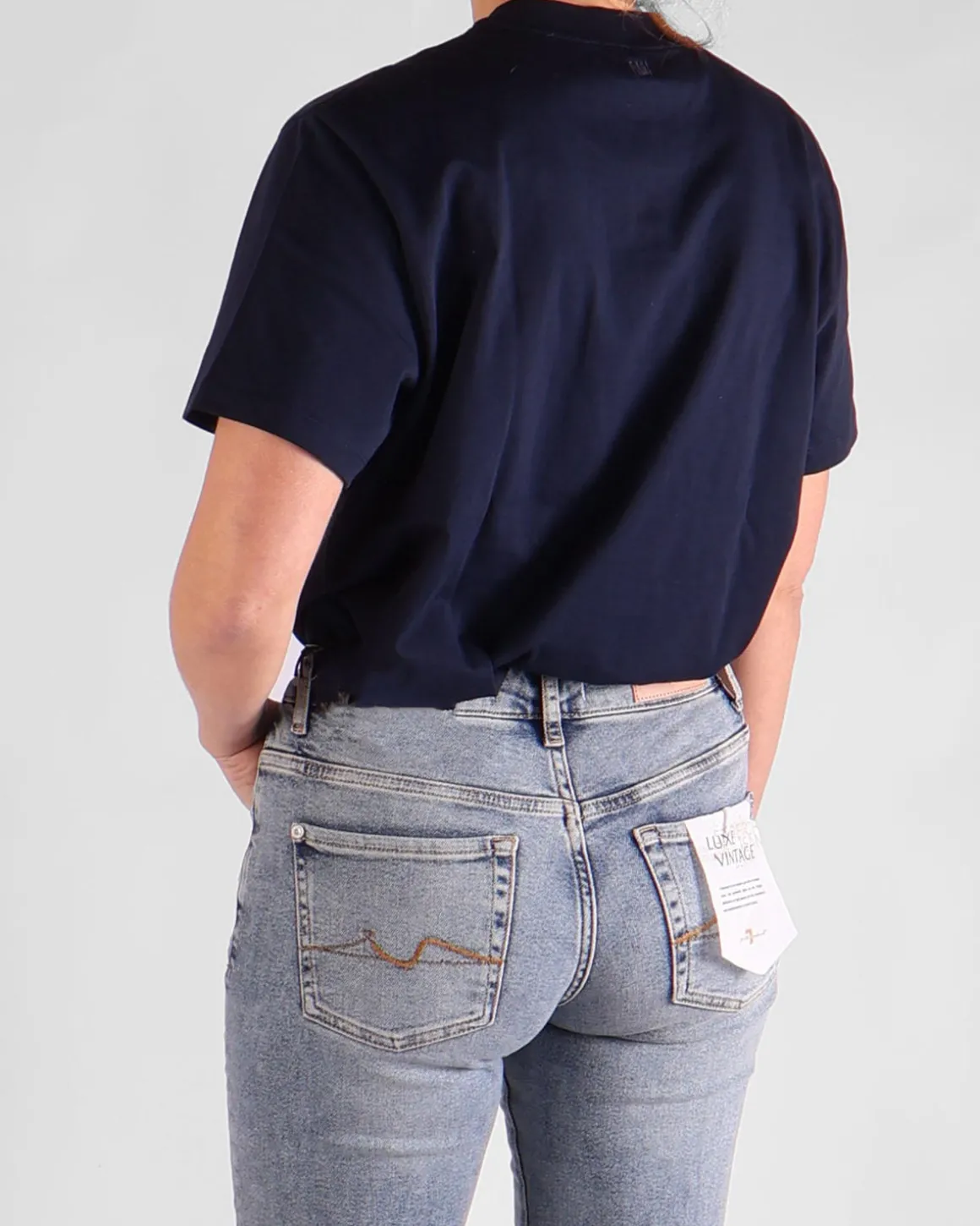 Deze donkerblauwe top van AMI heeft een strak, minimalistisch ontwerp met een relaxte pasvorm, wat het perfect maakt voor zowel casual als meer verfijnde looks. De hoogwaardige stof biedt comfort en behoudt een verfijnde uitstraling. De veelzijdige stijl combineert makkelijk met verschillende outfits voor elke gelegenheid.