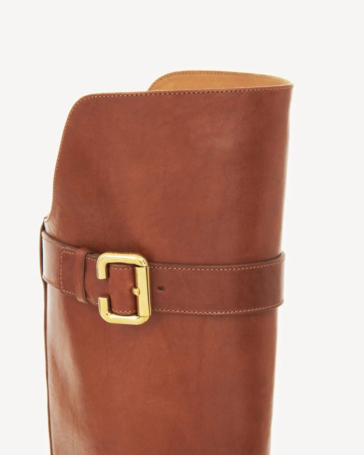 Deze bruine leren hoge laarzen van Chloé zijn een perfecte mix van elegantie en vakmanschap, gemaakt van hoogwaardig leer voor een luxe uitstraling. Het slanke, knie-hoge ontwerp accentueert de benen en is afgewerkt met subtiele details die de tijdloze esthetiek van Chloé weerspiegelen. Dankzij de warme bruine tint zijn de laarzen veelzijdig en gemakkelijk te combineren met zowel casual als chicere outfits.