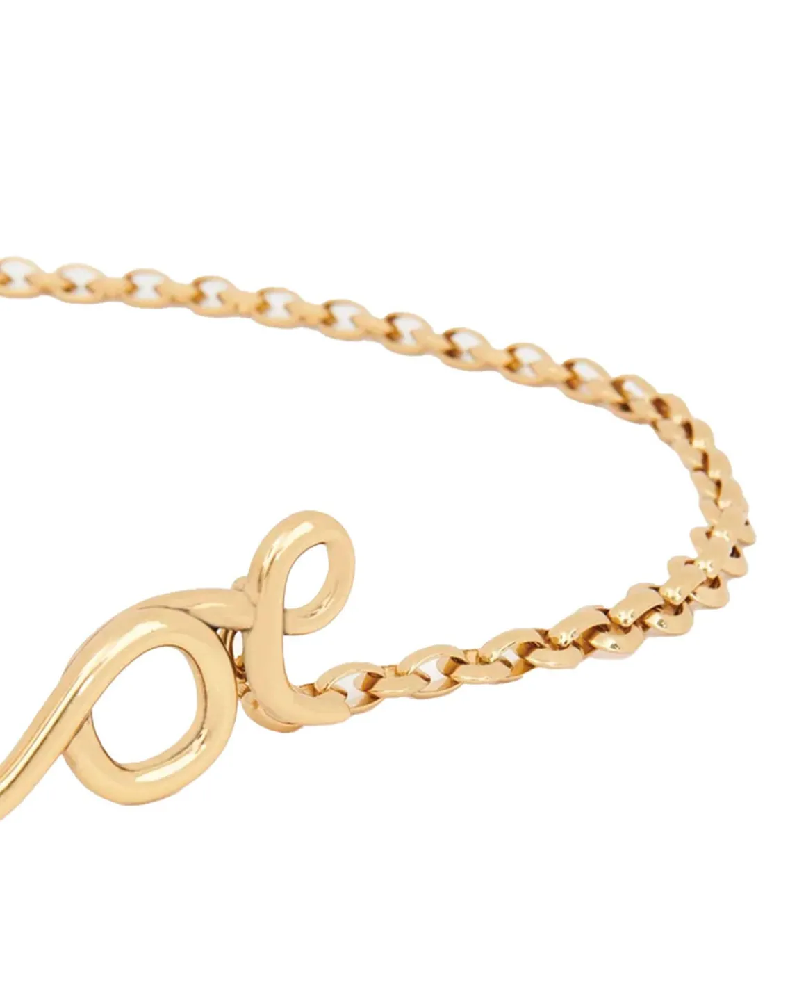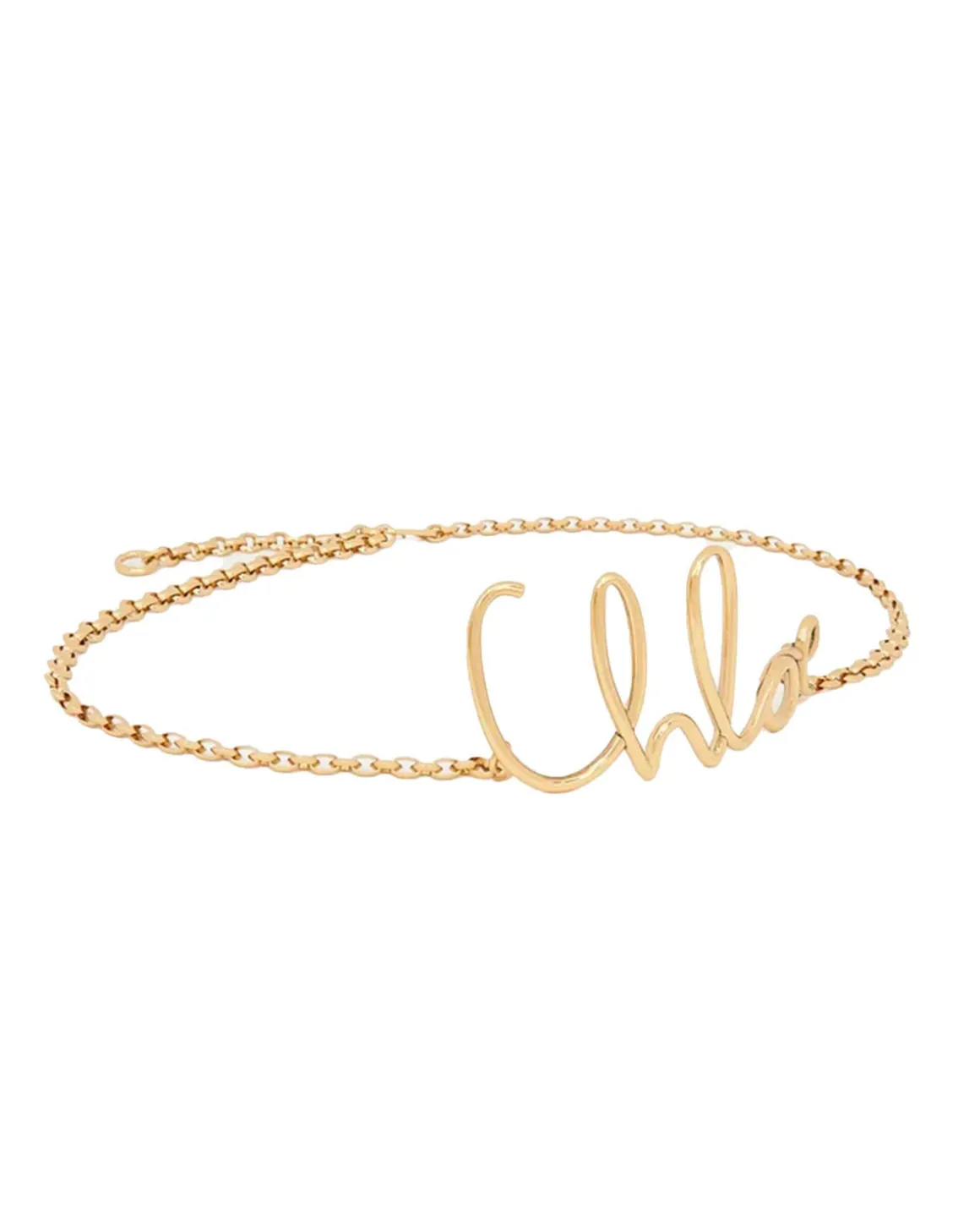 Deze gouden Chloé iconische kettingriem heeft kleine ronde schakels, verfraaid met het Chloé-logo in gouden messing. De riem kan hoog op de taille of laag op de heupen gedragen worden, waardoor het een elegante en veelzijdige toevoeging is aan elke outfit.