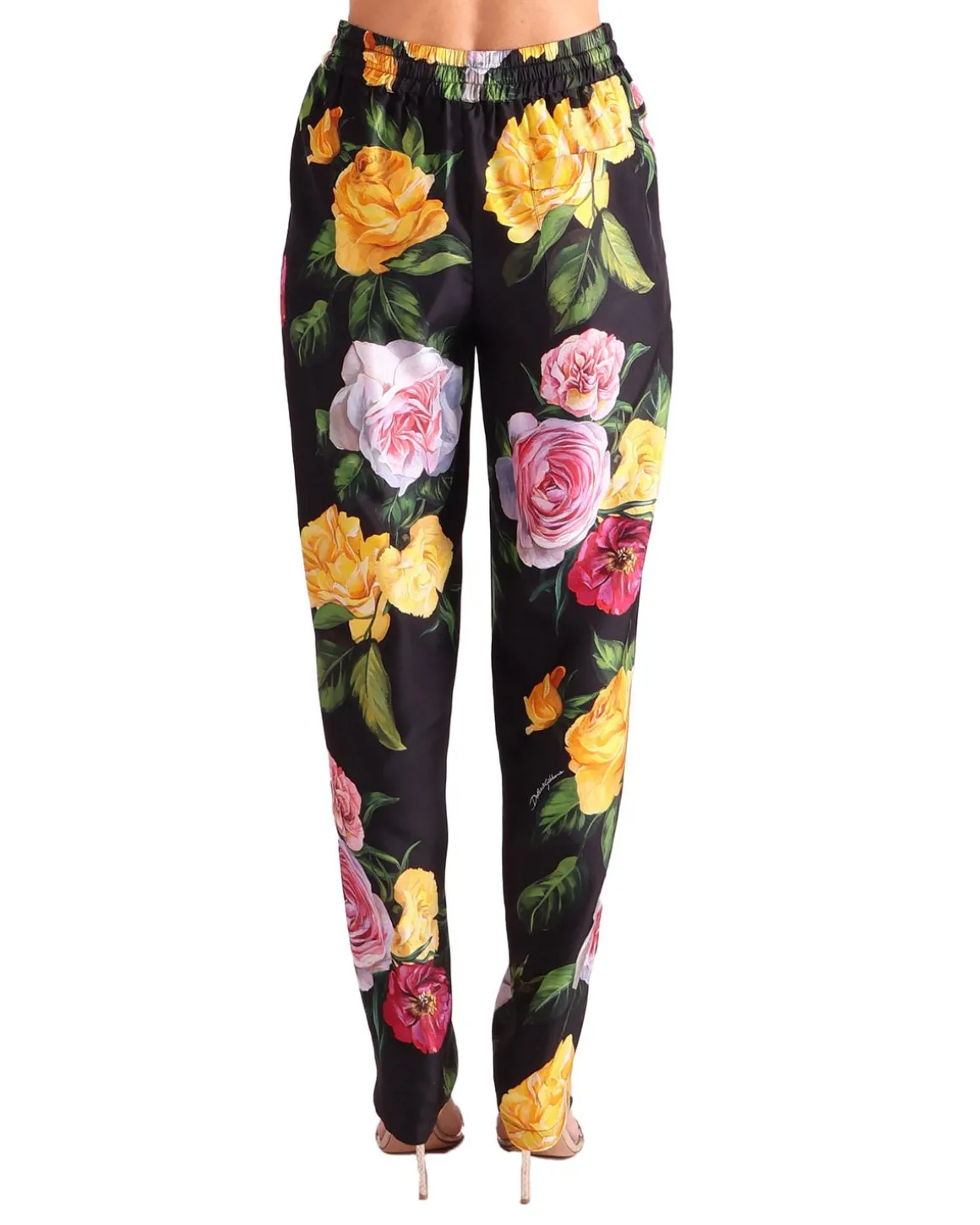 Deze zwarte broek van DOLCE & GABBANA heeft een gedurfd bloemenpatroon dat een levendige en verfijnde uitstraling geeft. Gemaakt van hoogwaardige stof, bieden ze zowel comfort als stijl, waardoor ze perfect zijn voor zowel casual als meer formele gelegenheden. Het opvallende ontwerp past mooi bij eenvoudige tops of kan worden aangekleed met elegante blouses.