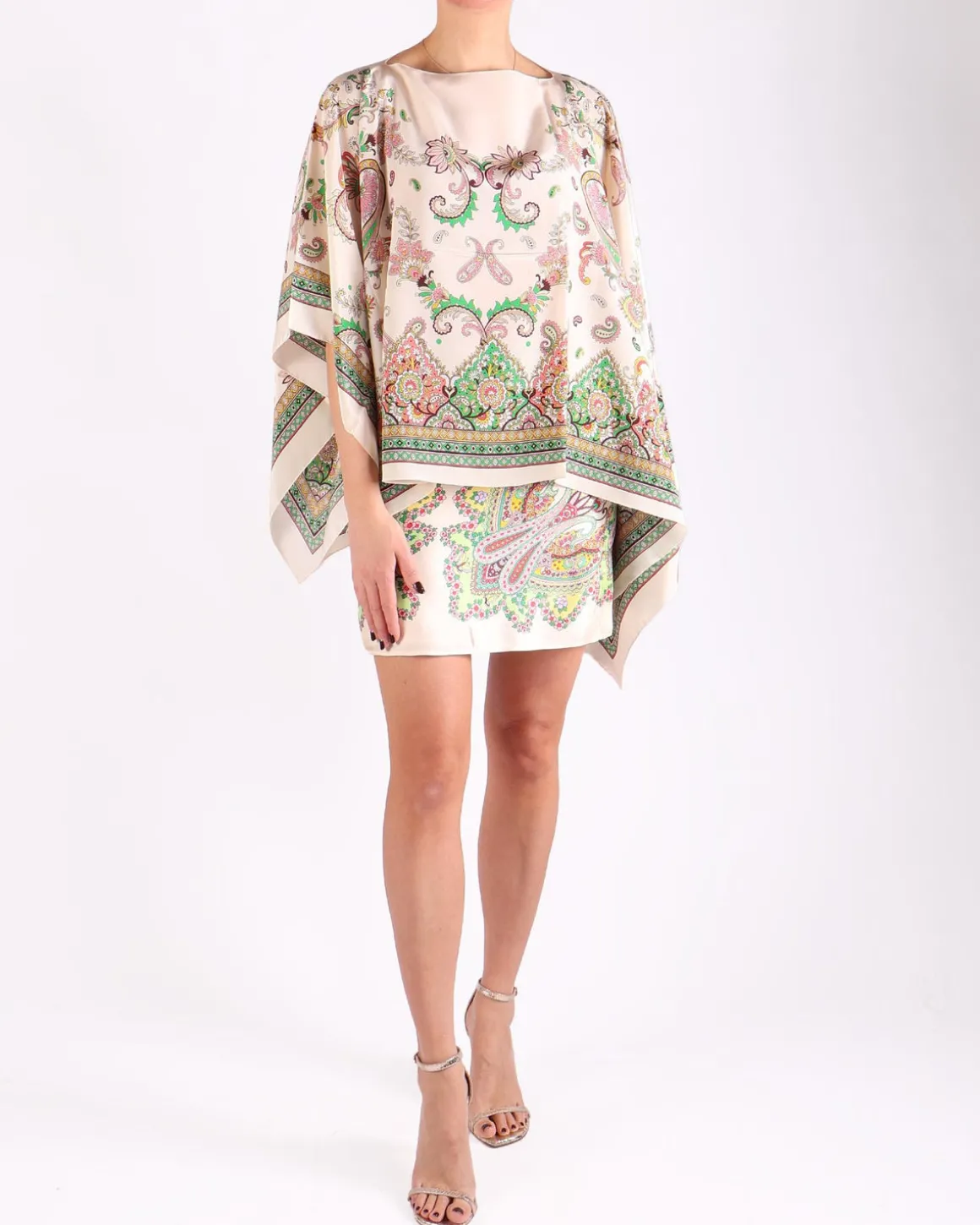 Deze ETRO witte mini-rok heeft een all-over multi-kleur paisley print, die een gedurfde en eclectische uitstraling aan je garderobe toevoegt. Het levendige patroon wordt geaccentueerd door de frisse witte basis, wat zorgt voor een elegante en tijdloze look met een vleugje vintage charme. Dankzij de flatterende pasvorm is deze rok ideaal voor zowel casual als meer geklede outfits.