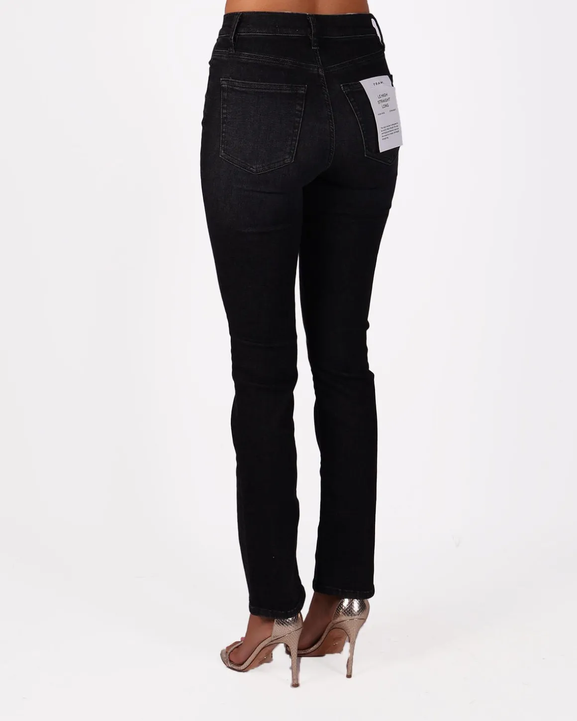 De zwarte skinny jeans van Frame Jeans met een hoge taille combineert stijl en comfort in een flatterend ontwerp. De hoge taille accentueert de taille en creëert een slank silhouet, terwijl de stretch denim zorgt voor een nauwsluitende, comfortabele pasvorm. Deze veelzijdige jeans is perfect voor zowel casual als meer geklede looks, met een strakke zwarte afwerking die elke outfit een moderne touch geeft.