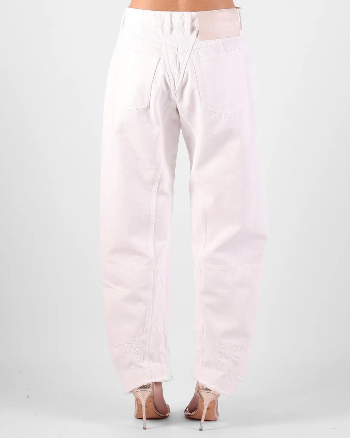 Deze witte ballonbroek van Jil Sander biedt een moderne en verfijnde pasvorm met een trendy ballonstijl. Het ontwerp voegt volume toe rond de heupen en taille, terwijl de strakke enkels zorgen voor een elegante afwerking. De tijdloze witte kleur maakt deze broek veelzijdig en gemakkelijk te combineren met verschillende tops en accessoires. Perfect voor zowel casual als meer geklede gelegenheden, deze ballonbroek is een stijlvolle toevoeging aan elke garderobe.