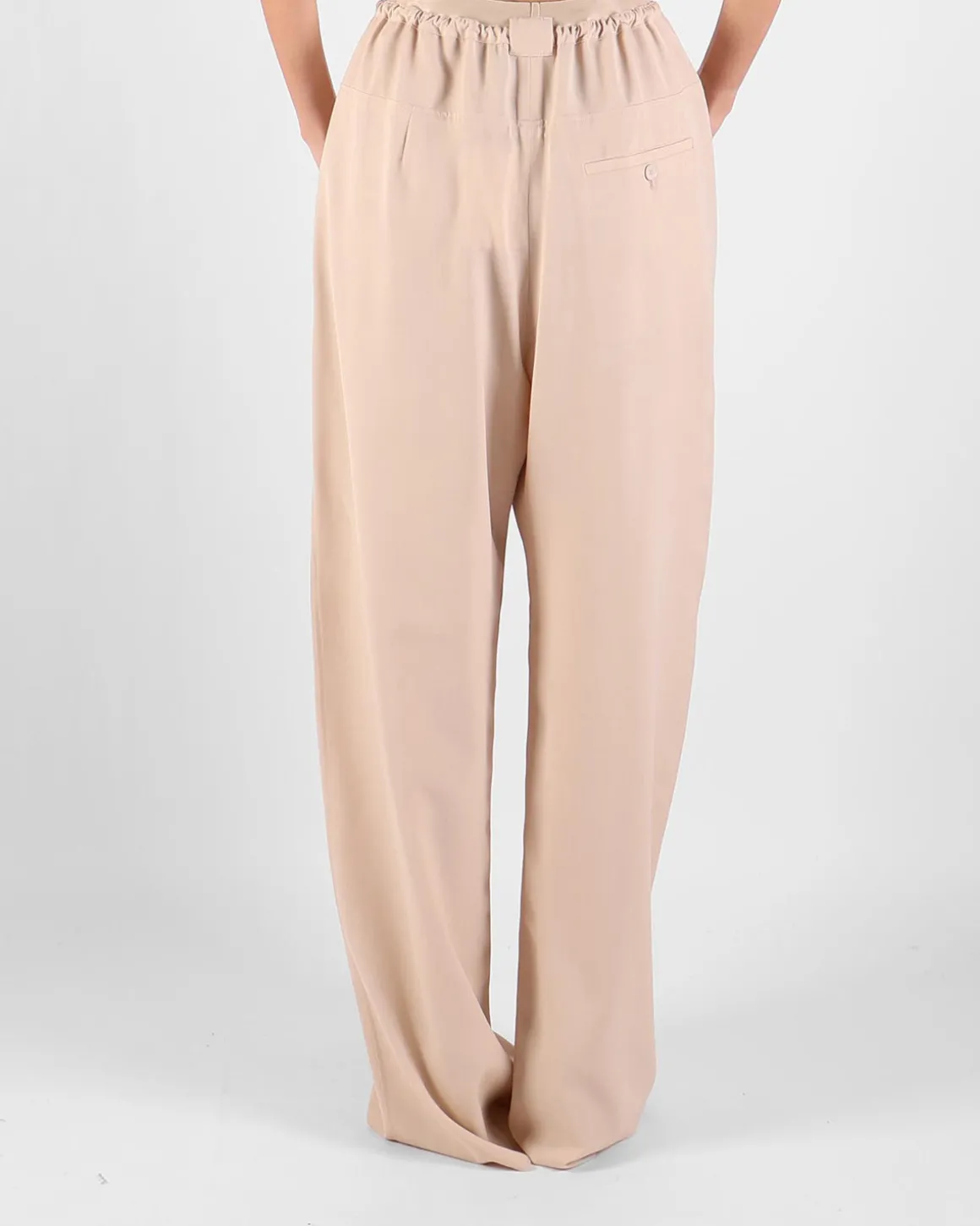 Deze beige broek van Lanvin heeft een elastische taille met een trekkoord, waardoor je de pasvorm gemakkelijk kunt aanpassen voor optimaal comfort. Het relaxte ontwerp maakt ze perfect voor casual wear, terwijl de neutrale beige kleur zorgt voor veelzijdigheid en zich gemakkelijk laat combineren met verschillende tops. Ideaal voor zowel ontspannen dagen als meer gepolijste, casual looks, deze broek combineert comfort met moeiteloze stijl.