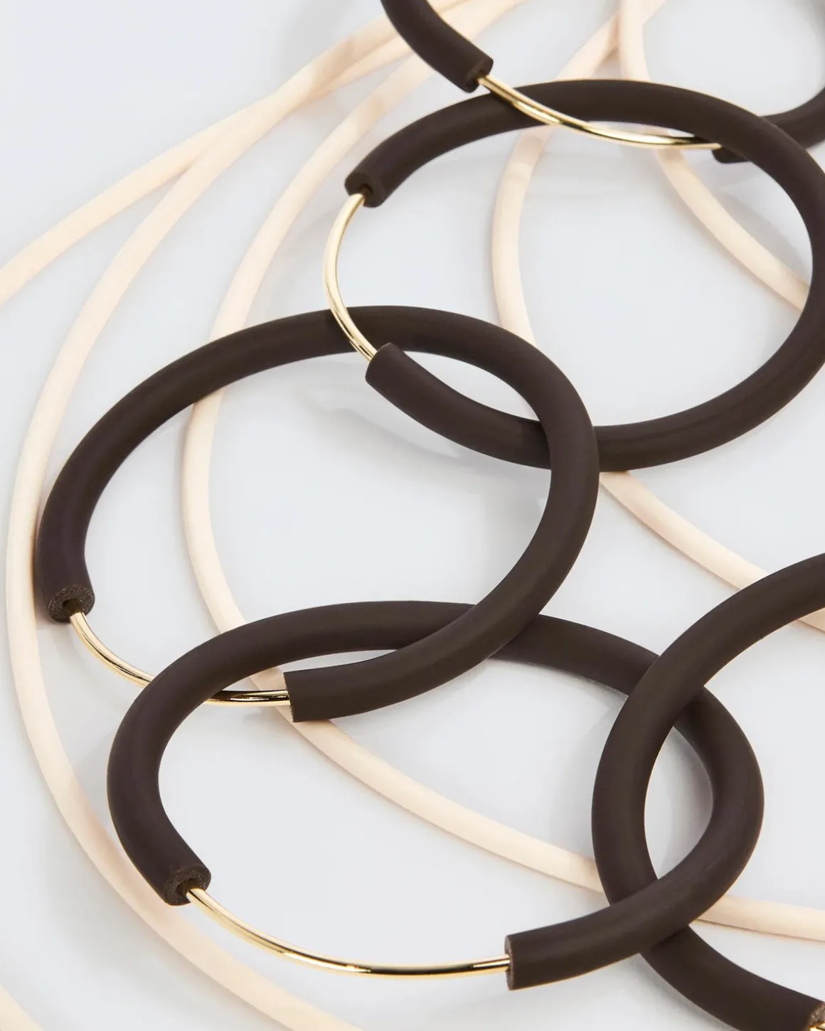 Deze meerlagige lange ketting van Liviana Conti bestaat uit cirkelvormige elementen, gecombineerd met goudkleurige metalen accenten, wat het een gedurfde maar verfijnde uitstraling geeft. De rubberen strengen voegen een moderne, textuurrijke touch toe, waardoor het een veelzijdig accessoire is voor zowel casual als avondkleding. Het unieke ontwerp en de combinatie van materialen maken het een opvallend sieraad dat elke outfit een extra dimensie van elegantie geeft. Perfect voor wie zijn look wil verfijnen met een eigentijdse flair. Ideaal om zowel dagelijks als voor speciale gelegenheden een vleugje verfijning toe te voegen.